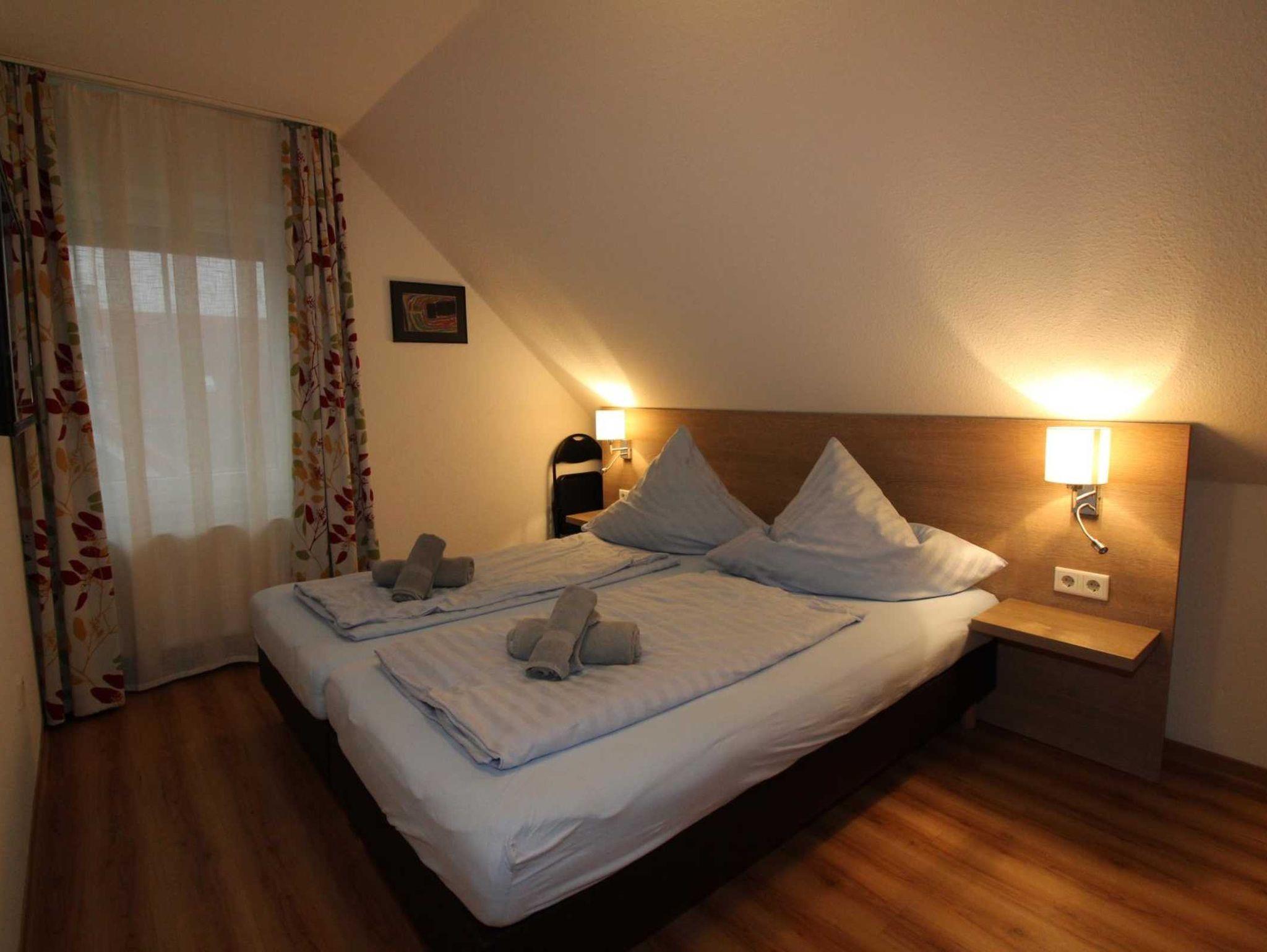 ein Schlafraum mit zwei Einzelbetten