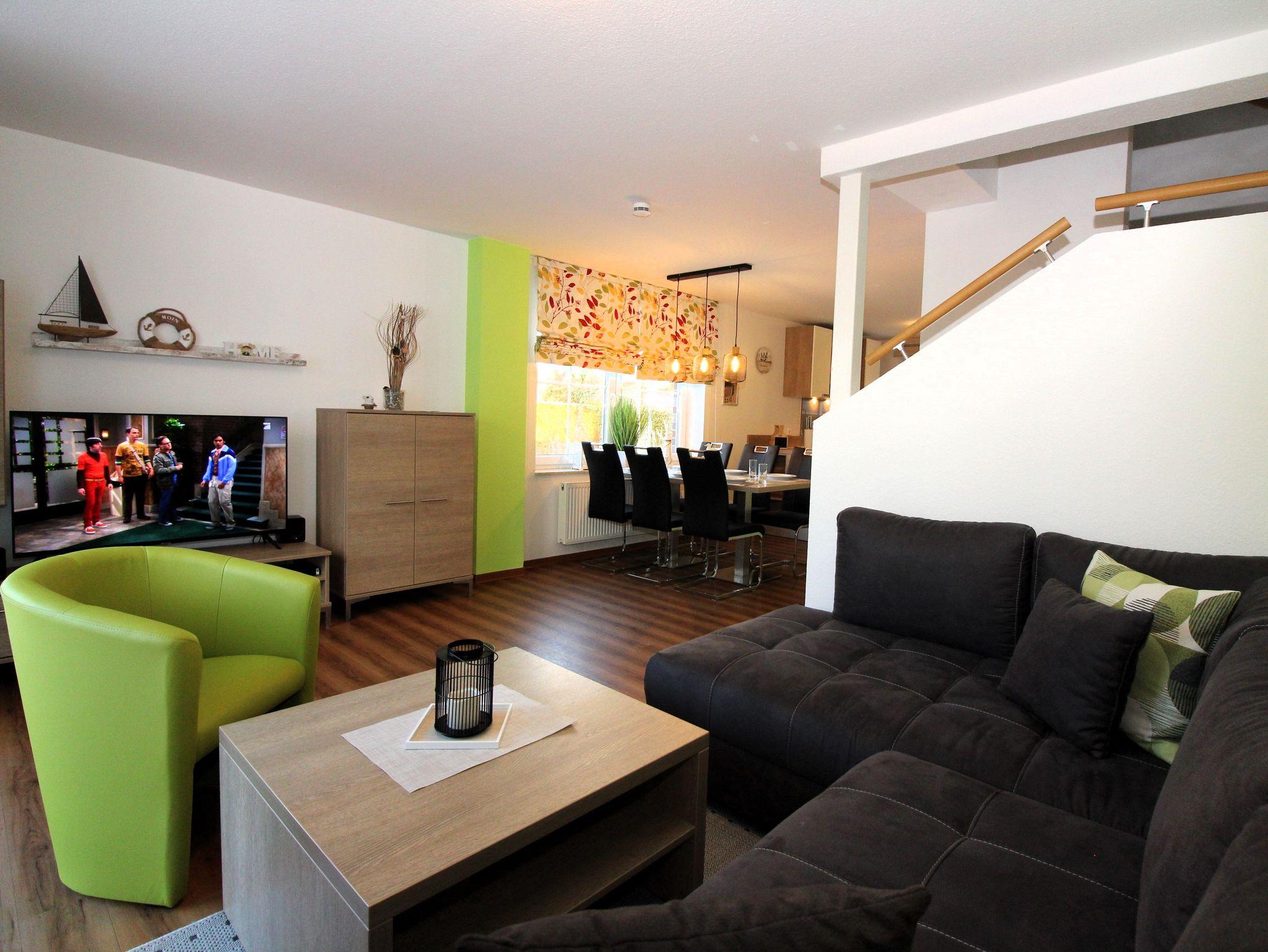 Der große Esstisch bietet Platz für bis zu 6 Personen (plus Kinderhochstuhl).