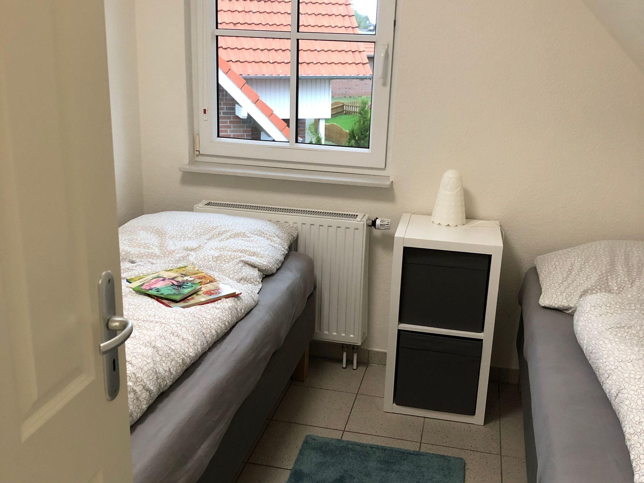 Das Obergeschoss der Doppelhaushälfte erreichen Sie über eine Holztreppe. Hier befindet sich ein Schlafzimmer mit Doppelbett und ein weiteres Schlafzimmer mit einem oder zwei Einzelbetten. Ein zweites Badezimmer mit Dusche und WC finden sie ebenfalls hier.