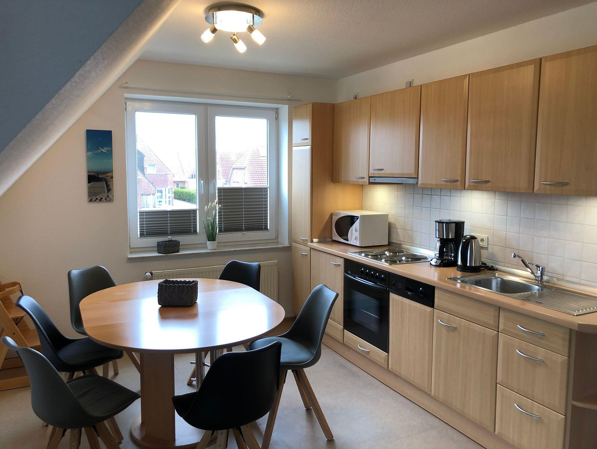 Die Wohnung liegt im 1. Obergeschoss im Reetdachhaus 2 und verfügt über einen Südost-Balkon, sodass Sie Ihr Frühstück bereits in der Sonne genießen können. (Tisch und vier Stühle sind vorhanden)