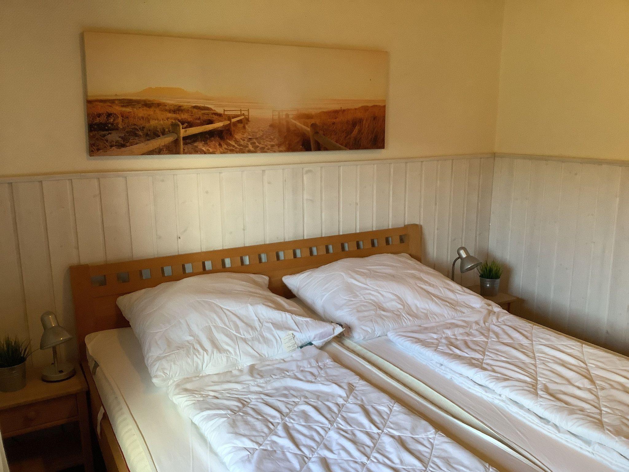 Das erste Schlafzimmer verfügt über ein Doppelbett, das zweite Schlafzimmer über drei Schlafmöglichkeiten, davon eines als Hochbett. Das Badezimmer verfügt über eine Dusche, ein WC und ein Waschbecken. Außerdem können Sie in einem kleinen Abstellraum Ihre Habseligkeiten verstauen.