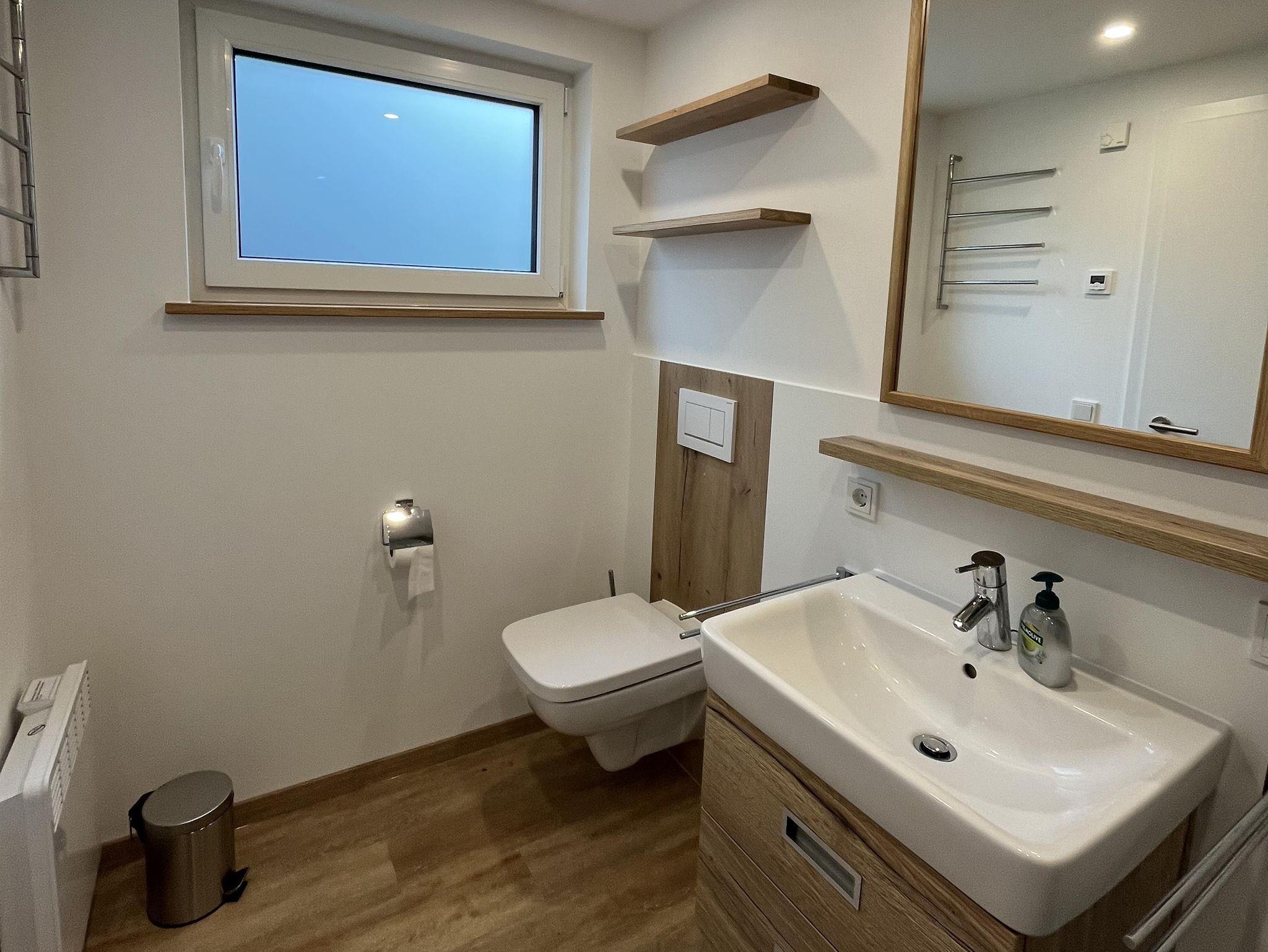 Das haustierfreie Ferienhaus verfügt im EG über ein neues Badezimmer mit großzügiger, ebenerdiger (Regen-)Dusche, WC, Insektenschutzrahmen und Fußbodenheizung. Die Küche ist mit einem Induktionskochfeld, einer Granitarbeitsplatte, einem großen Geschirrspüler und einer Waschmaschine ausgestattet. Der große Kühlschrank mit Gefrierfach bietet genügend Stauraum. Das helle Wohnzimmer mit einem Flachbildfernseher mit Smart-TV (Zugang mit eigenen Zugangsdaten), einem Ecksofa mit Couchtisch und einem Esstisch mit 5 Stühlen. Ein Hochstuhl Tripp Trapp inkl. Baby Set ist ebenfalls vorhanden. Auch ein Schreibtisch steht zur Verfügung.