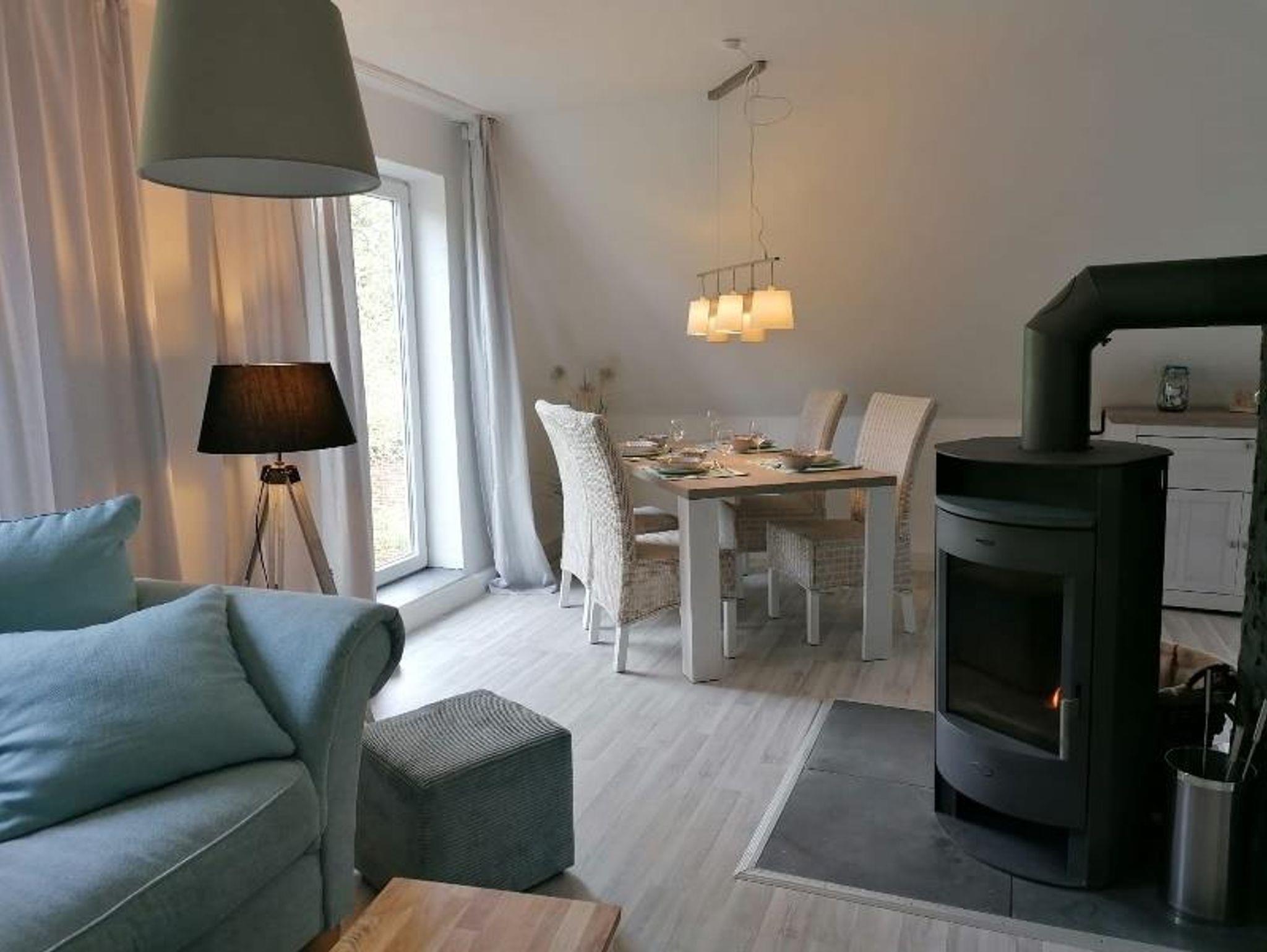 Der große Wohnraum ist kombiniert mit einer offenen, komplett eingerichteten Einbauküche, am großen Esstisch ist genug Platz um kulinarisch Leckereien in gemütlicher Atmosphäre zu speisen oder auch gesellige schöne Spielabende zu verbringen.