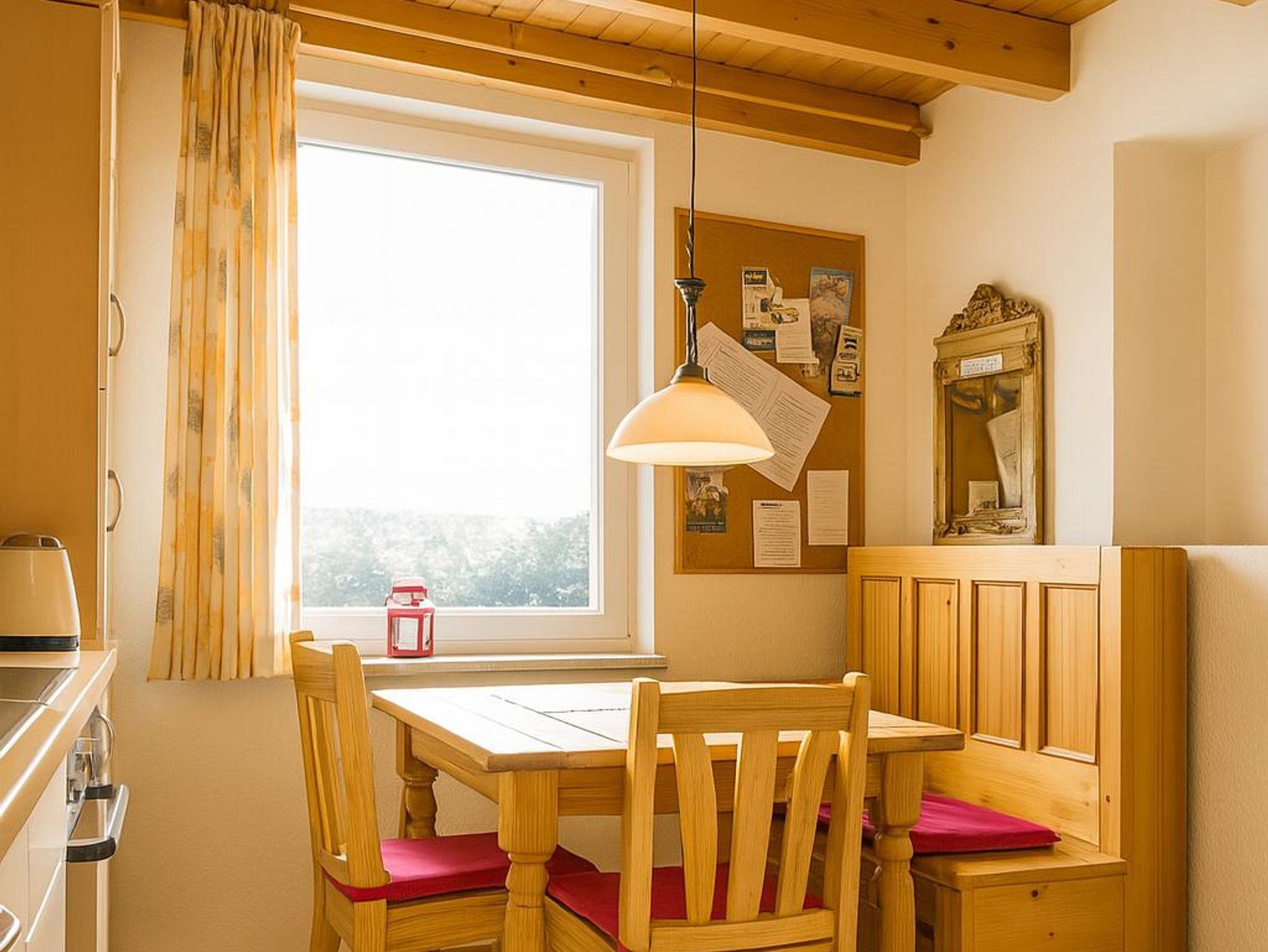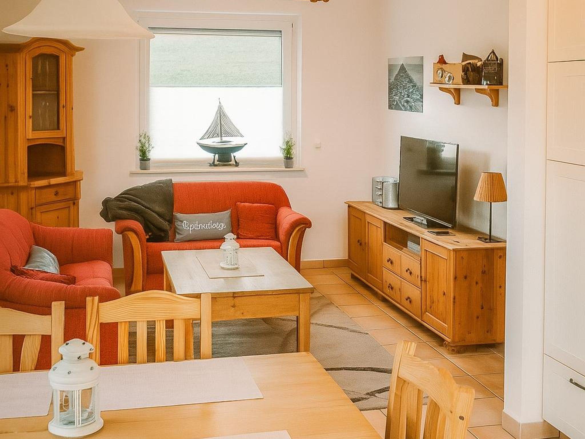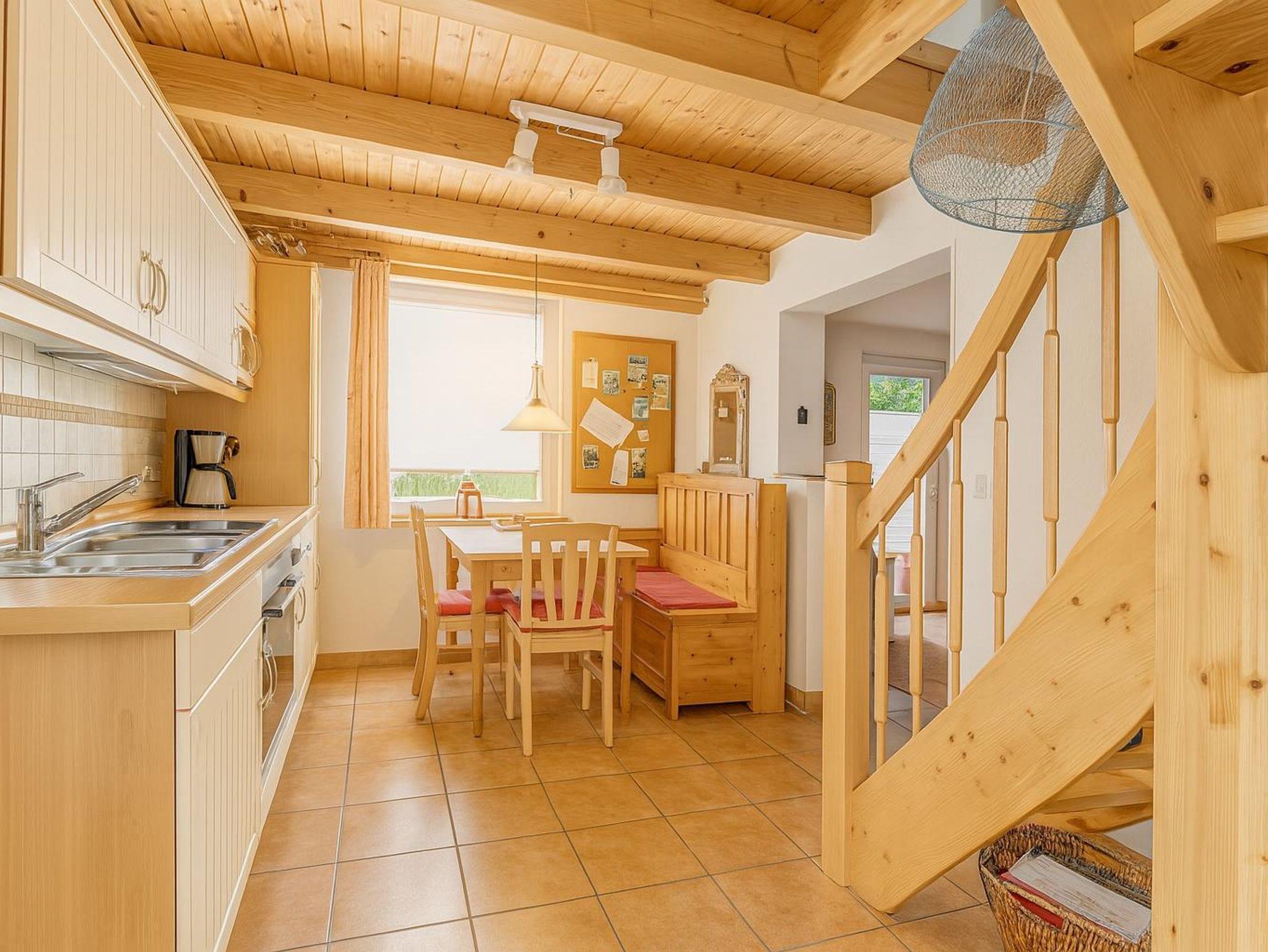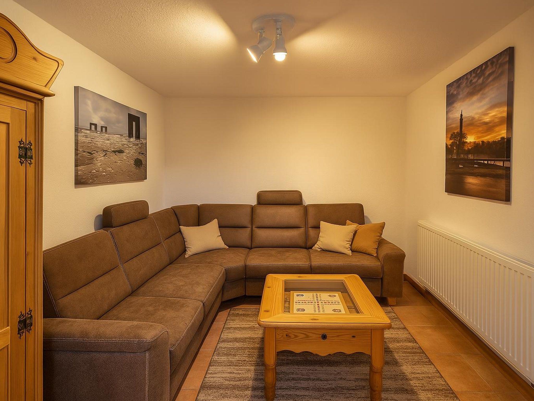 Das gemütliche Wohnzimmer lädt zu geselligen Abenden ein. Den Gästen stehen eine Stereoanlage, ein Smart-TV sowie zahlreiche Gesellschaftsspiele und Bücher zur Verfügung. Das gemütliche Ecksofa bietet Platz für die ganze Familie und verfügt sogar über eine Schlaffunktion. Schöne Bilder aus der Region runden die Wohlfühlatmosphäre ab. Vom Wohnzimmer aus gelangt man auf die eigene Terrasse und in den großen Garten.