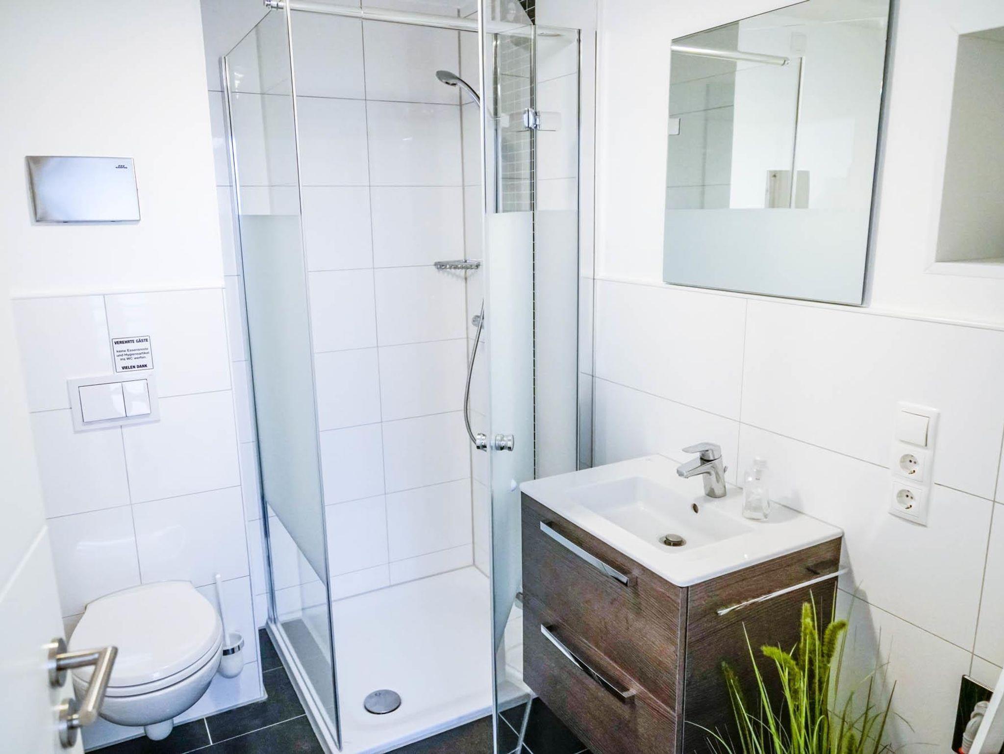 • Badezimmer: große Dusche, Handtücher auf Wunsch, ein Fön ist nicht vorhanden