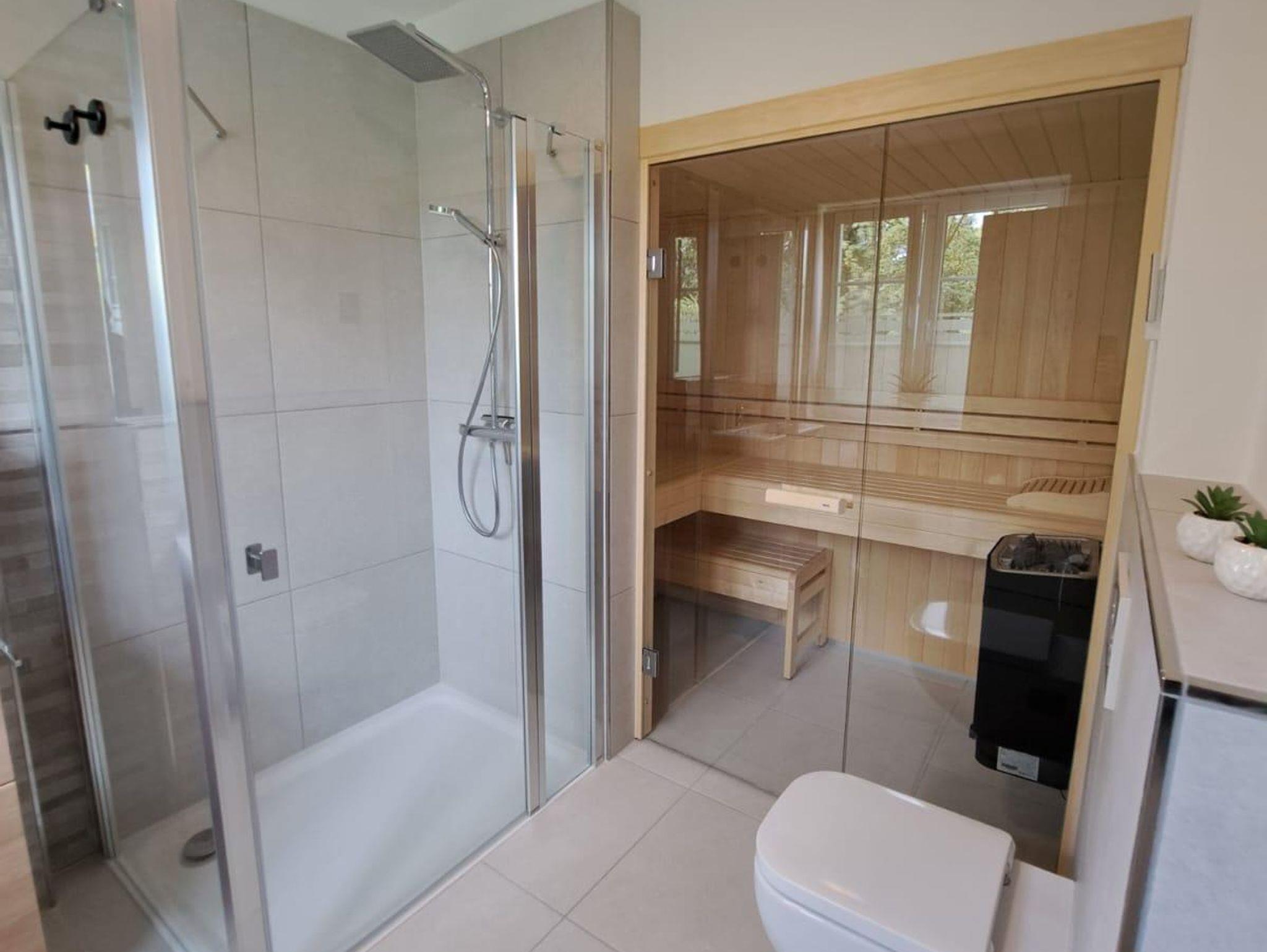 • Direkter Zugang zum modernen Bad mit Dusche und WC sowie zur hauseigenen Sauna – ideal zum Entspannen nach einem aktiven Tag