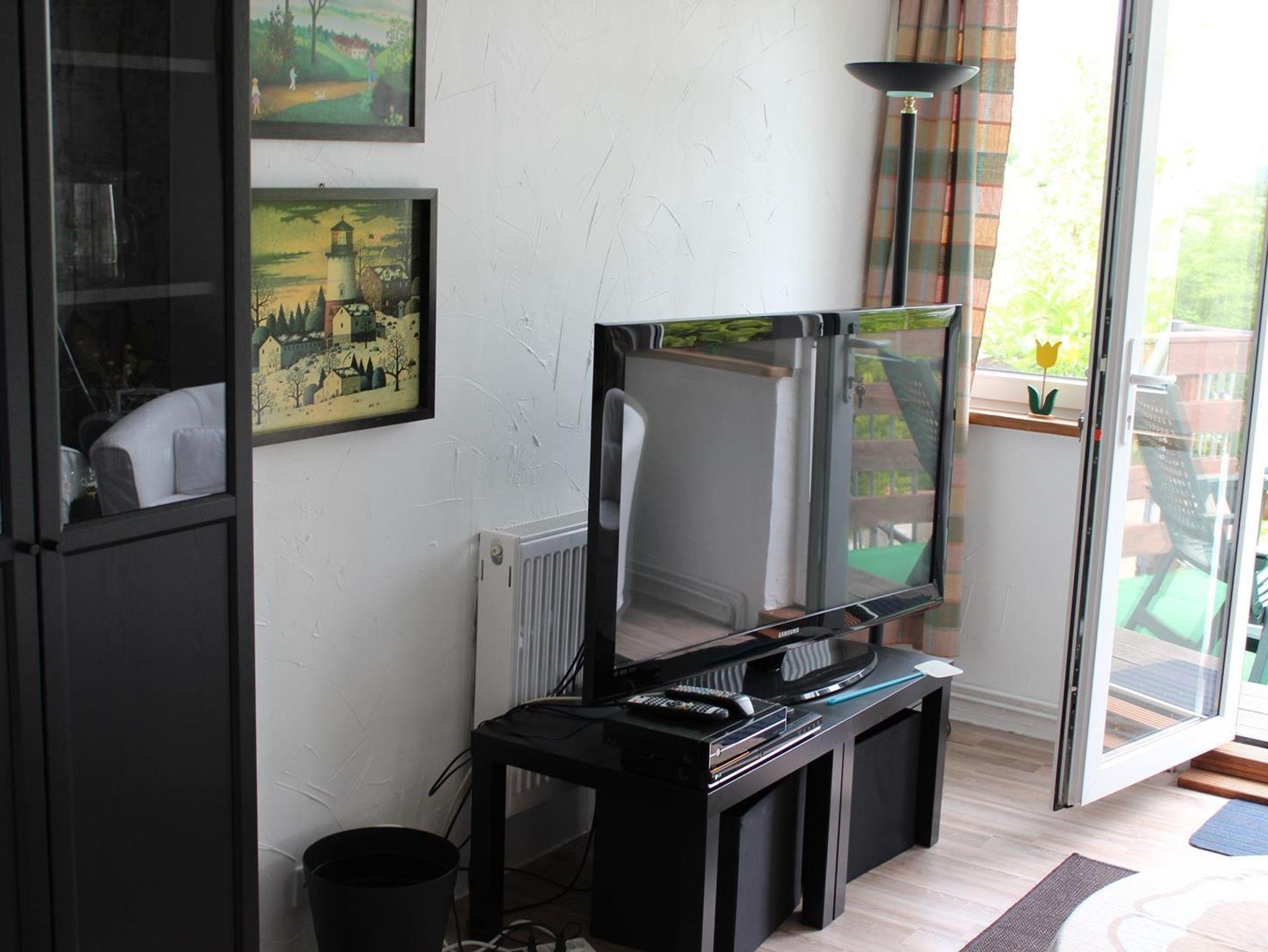 Die sehr gemütliche und helle Ferienwohnung für 4 Personen liegt im Obergeschoss eines sehr schönen Hauses direkt am Deich. Sie hat ein Wohnzimmer mit einer Sitzecke, einem großen Flachbildschirm und einem Zugang auf den Balkon mit Sitzmöglichkeiten für 4 Personen und einer Wendeltreppe in den großen Garten. Die voll ausgestattete Küche hat eine Essecke und eine Küchenzeile mit Backofen, Geschirrspüler, Mikrowelle, Kaffeemaschine, Wasserkocher und Toaster. Die 2 Schlafzimmer haben beide jeweils 2 Einzelbetten und einen Schrank mit genügend Platz. Das kleine Duschbad hat ein Waschtisch, Dusche und WC.