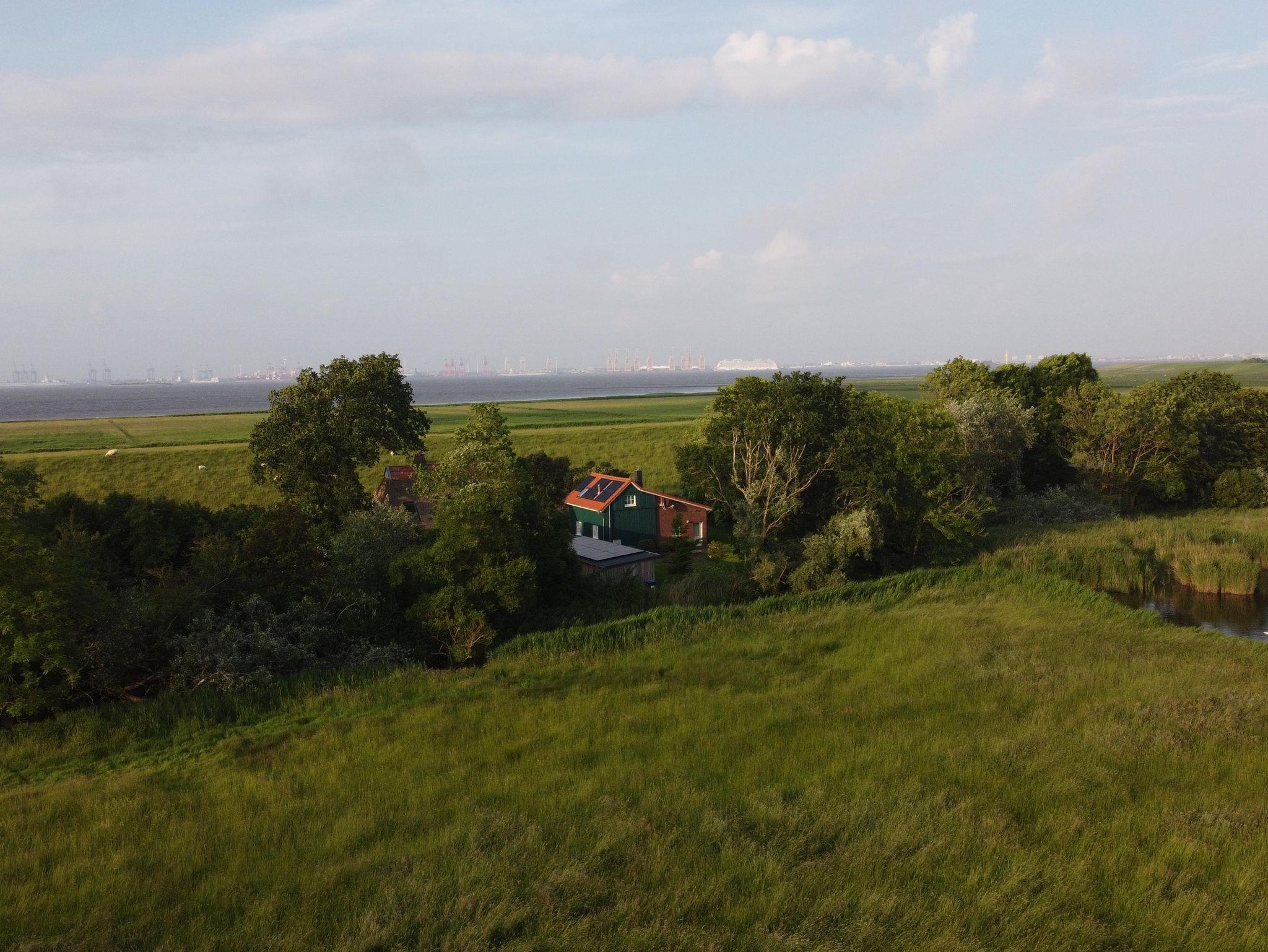 Vom Deich aus haben Sie einen freien Blich bis nach Bremerhaven zum Containerterminal und Kreuzfahrttermin nicht gestattet. al .