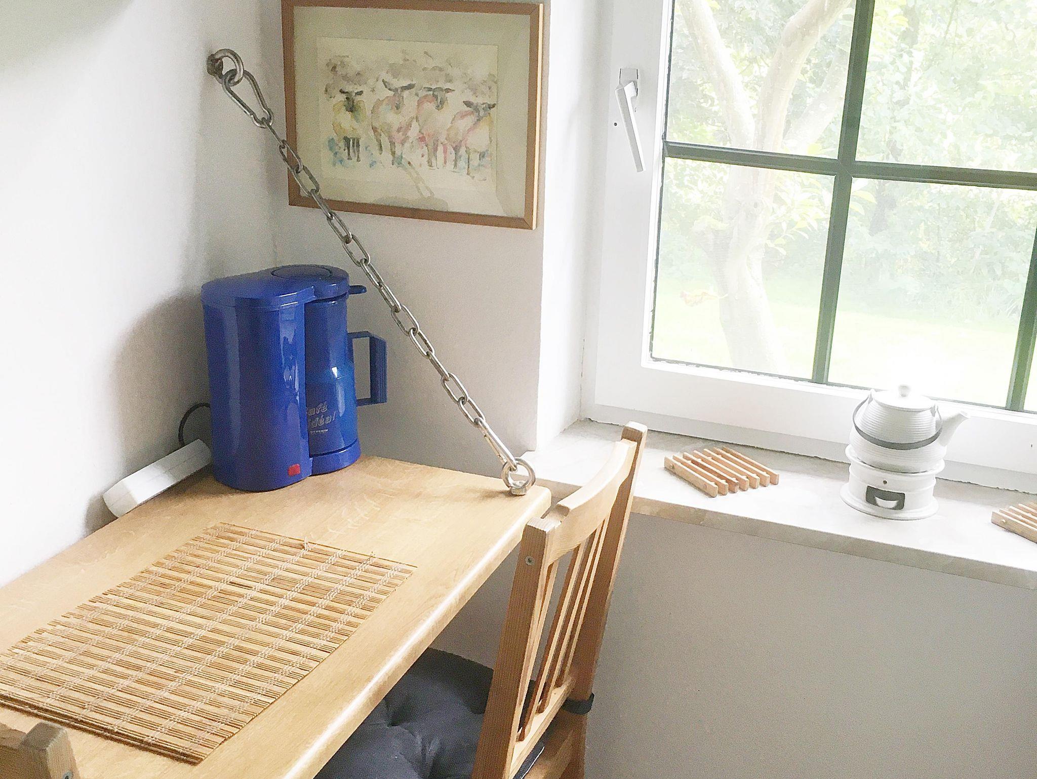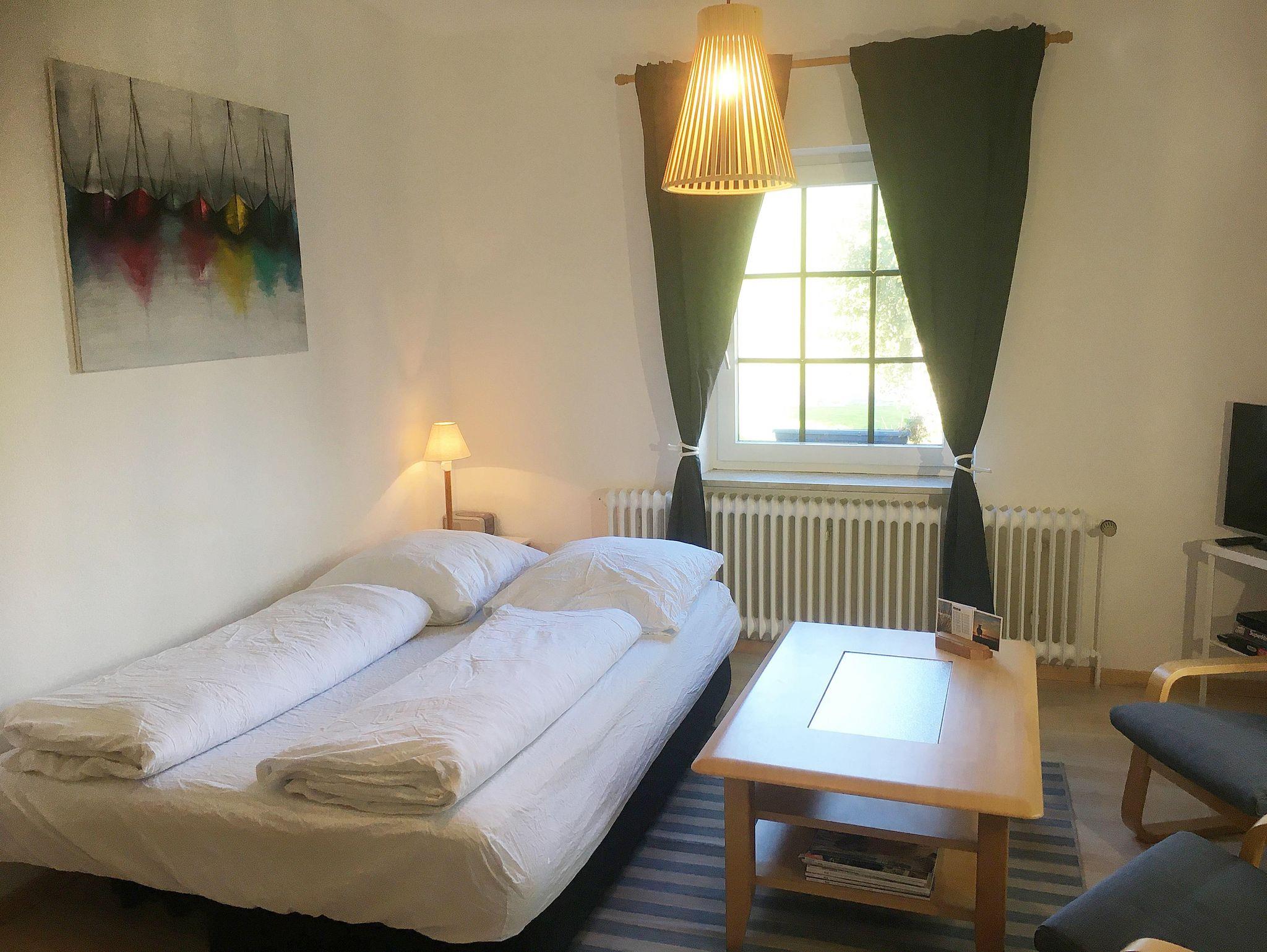Die kleine Ferienwohnung ist komplett ausgestattet mit allem, was man benötigt und besteht aus einem Wohn-/Schlafraum mit Schlafcouch zum Ausziehen und TV und Radio, einer Küche (Kaffemaschine, Wasserkocher, Herd, Kühlschrank) sowie einem Bad mit Dusche und WC. Auf dem großen Gartengrundstück haben Sie außerdem einen separaten Bereich, wo Sie entspannen, grillen und den Tag ausklingen lassen können. Ein kostenfreier Parkplatz befindet sich direkt am Haus. Eine überdachte Unterstellmöglichkeit für Fahrräder ist ebenso vorhanden.