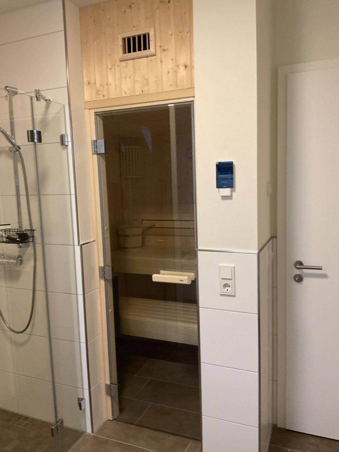 1 großes Badezimmer mit Badewanne, Dusche und Sauna