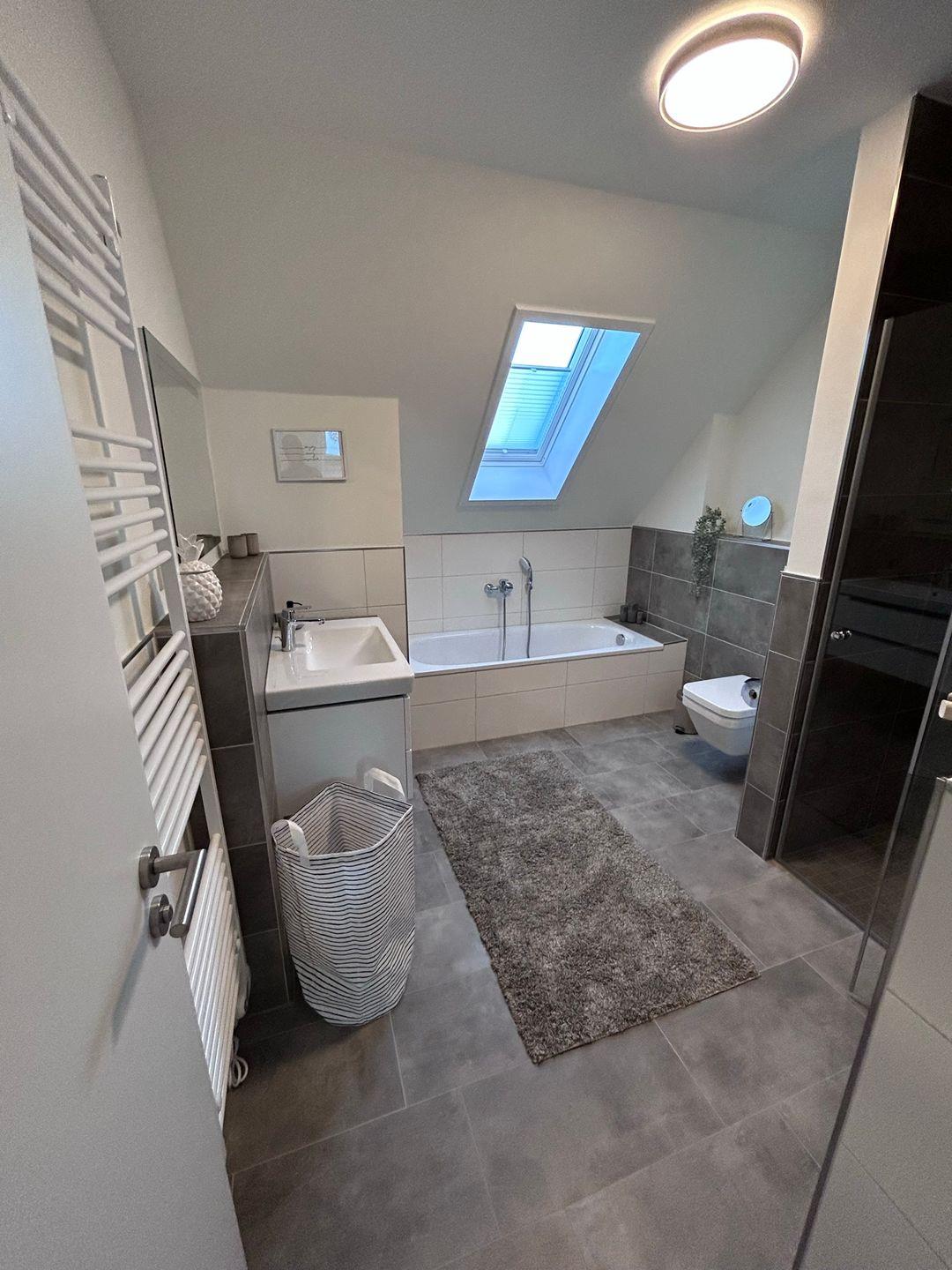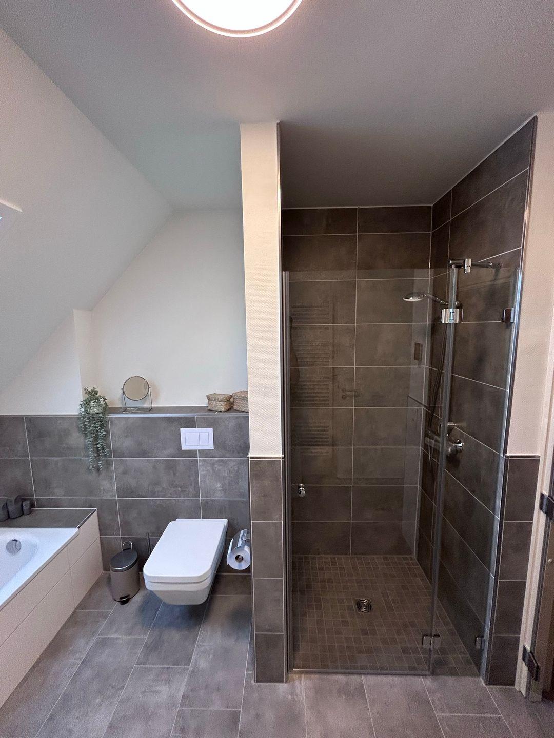 1 großes Badezimmer mit Badewanne, Dusche und Sauna