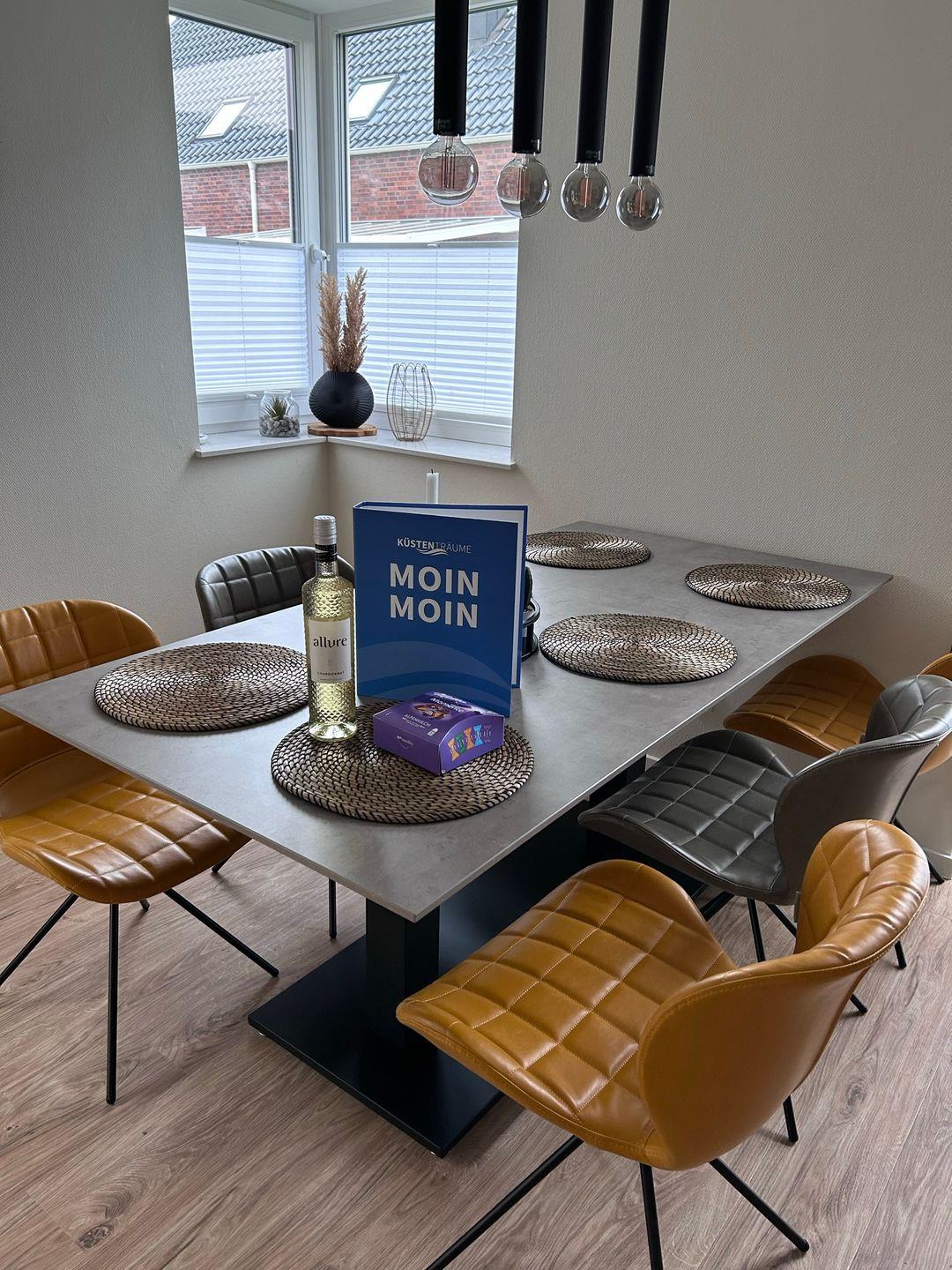 Unser neues Ferienhaus liegt unmittelbar hinterm Deich an der Nordsee und bietet bis zu 8 Personen (maximal 6 Erwachsene) ausreichend Platz.
