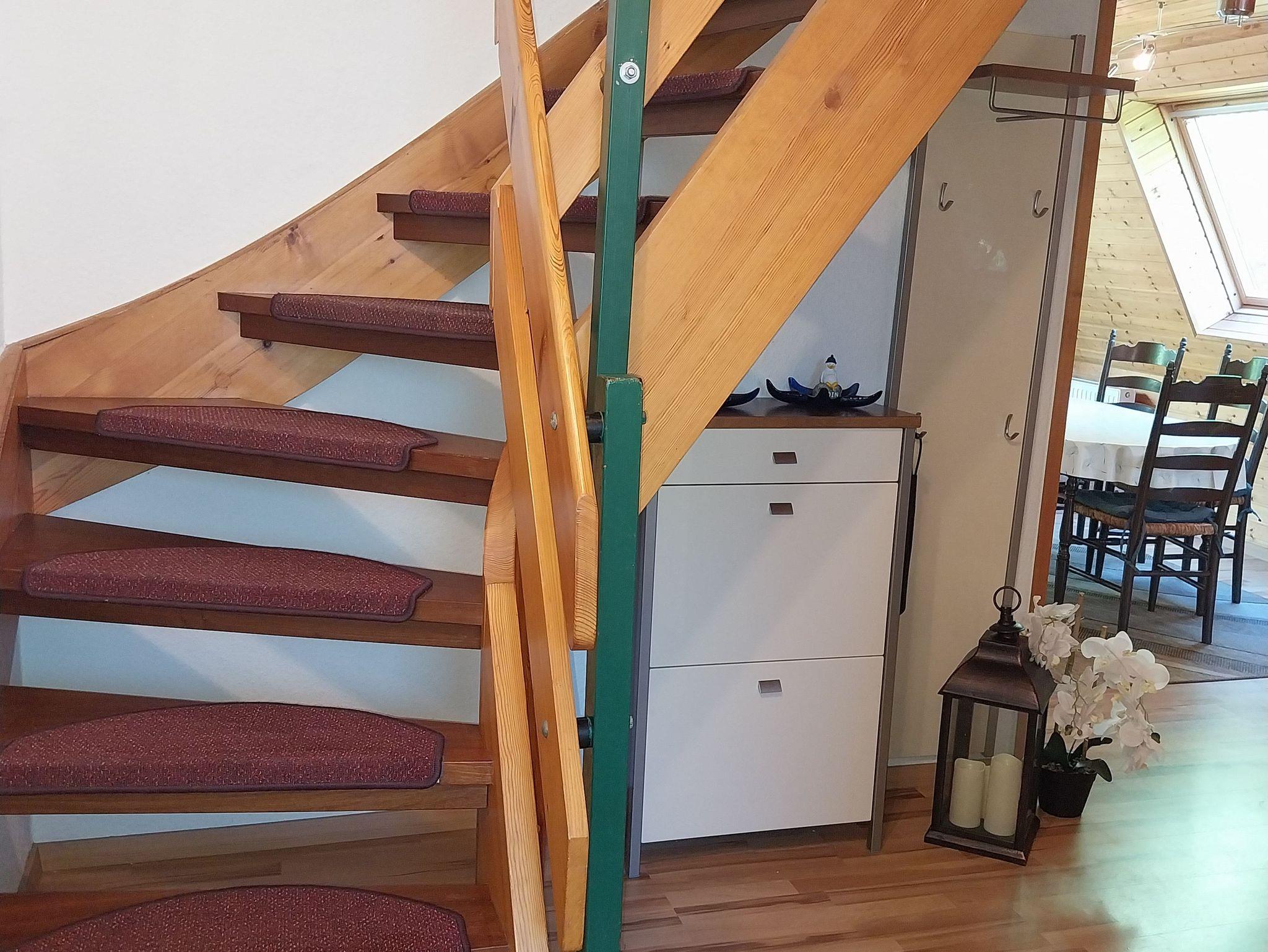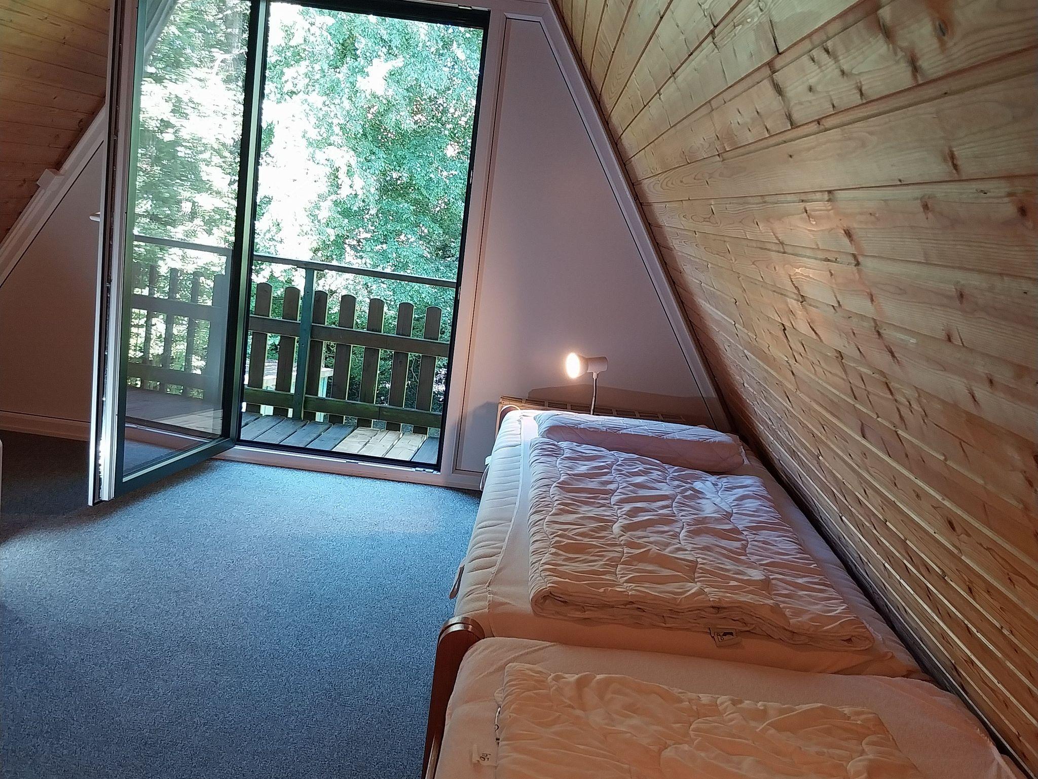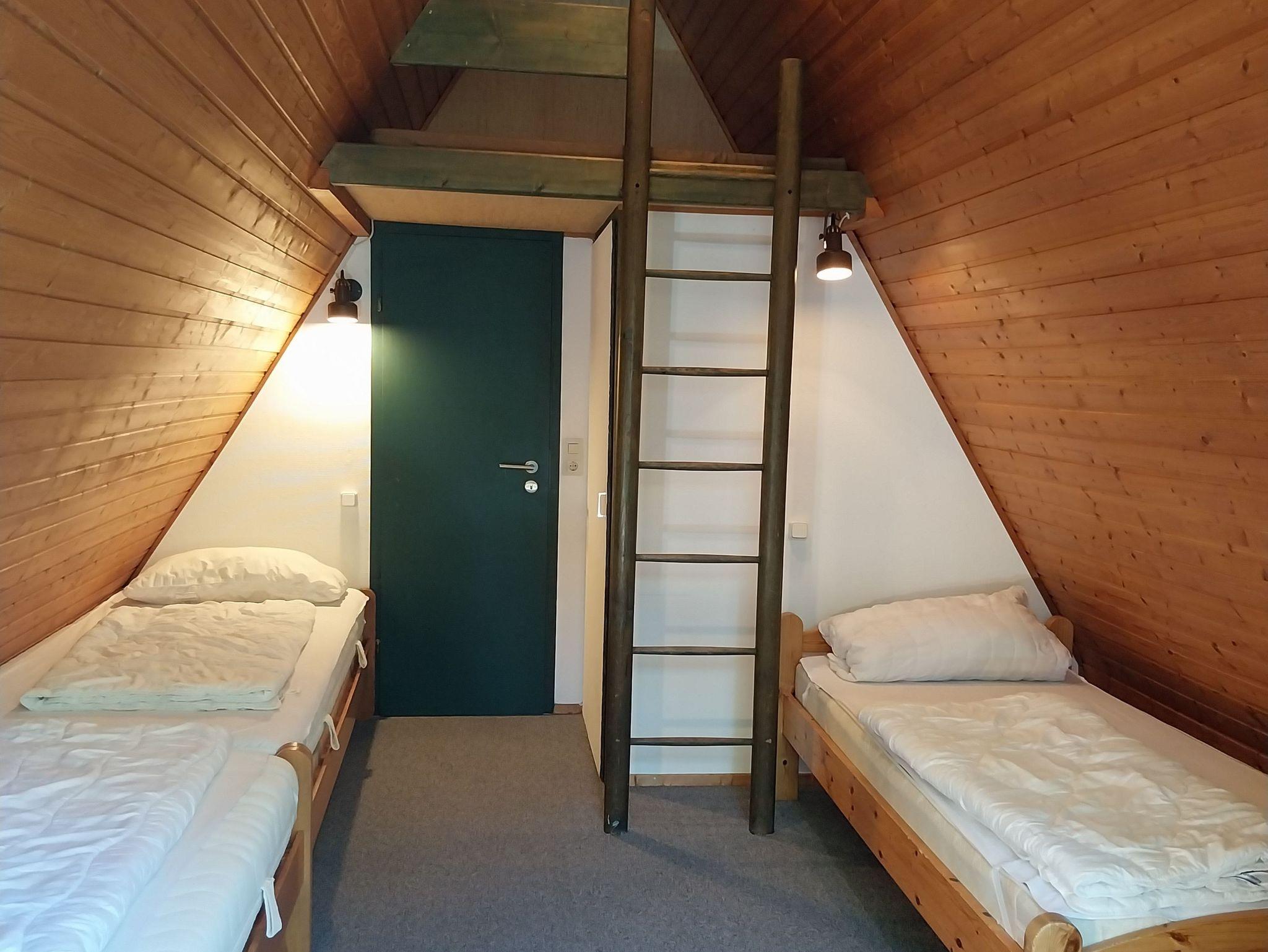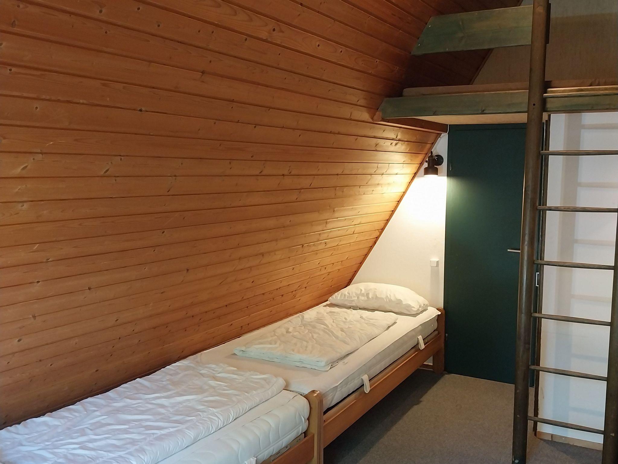 Die Schlafzimmer des Ferienhauses Nordseenest befinden sich im 1. Stock, welcher über eine Treppe erreichbar ist. In dem rechts gelegenen Schlafzimmer steht ein Doppelbett und das Schlafzimmer auf der linken Seite verfügt über 3 Einzelbetten.