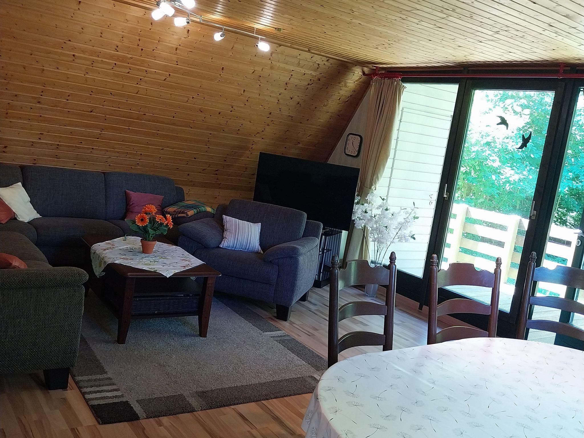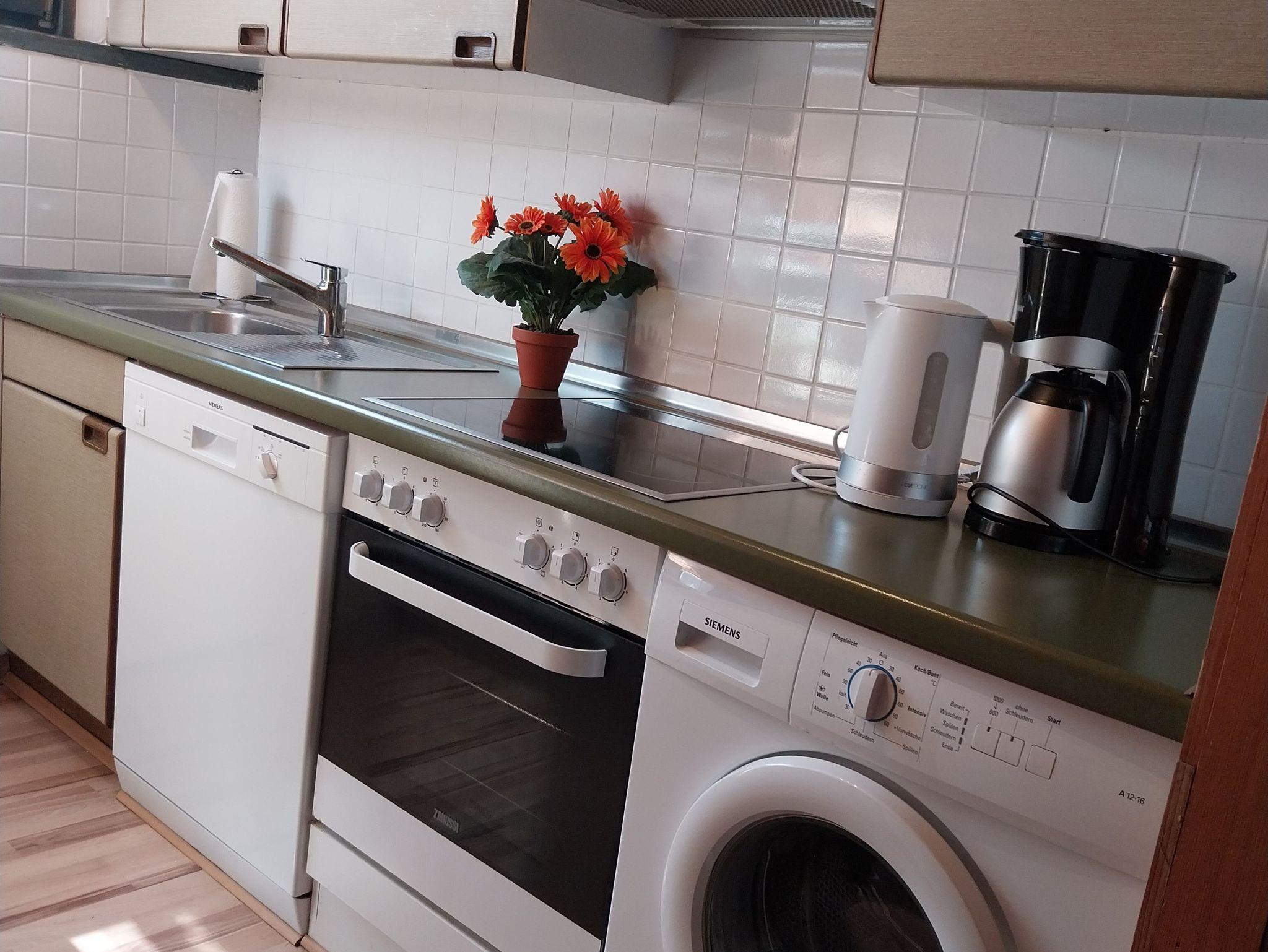 Im Erdgeschoß erwartet Sie ein sehr geräumiges Wohnzimmer, welches neben einer gemütlichen Sofasitzecke auch einen Essbereich bietet. Die kleine, aber feine offene Küche ist direkt an den Essbereich angeschlossen und verfügt neben einer Spülmaschine auch über eine Waschmaschine. Vom Wohnzimmer aus können Sie direkt die großzügig geschnittene Terrasse betreten, von der aus Sie auch in den schönen Garten gelangen.