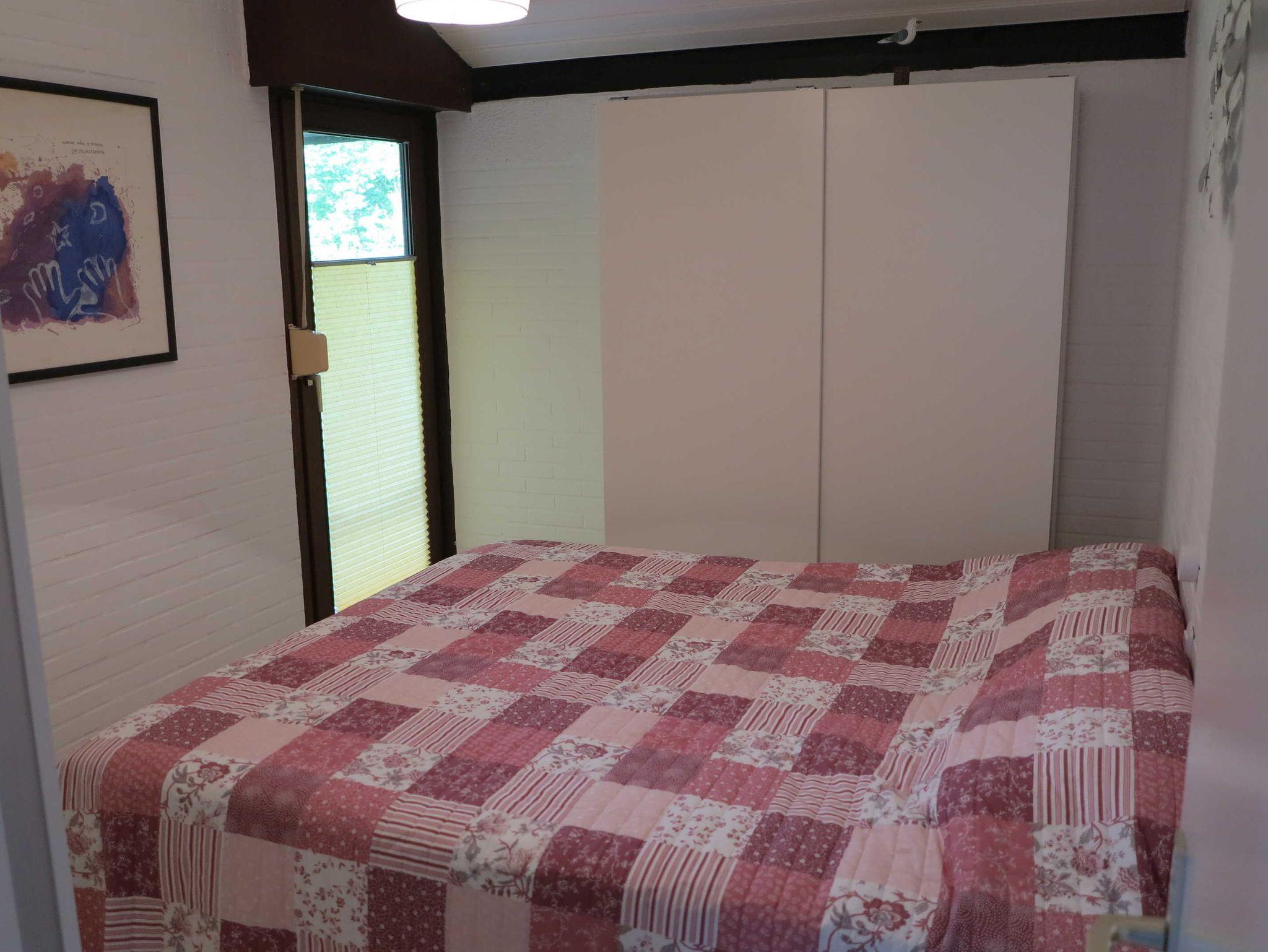 Im Schlafzimmer stehen ein Doppelbett sowie ein Schrank.