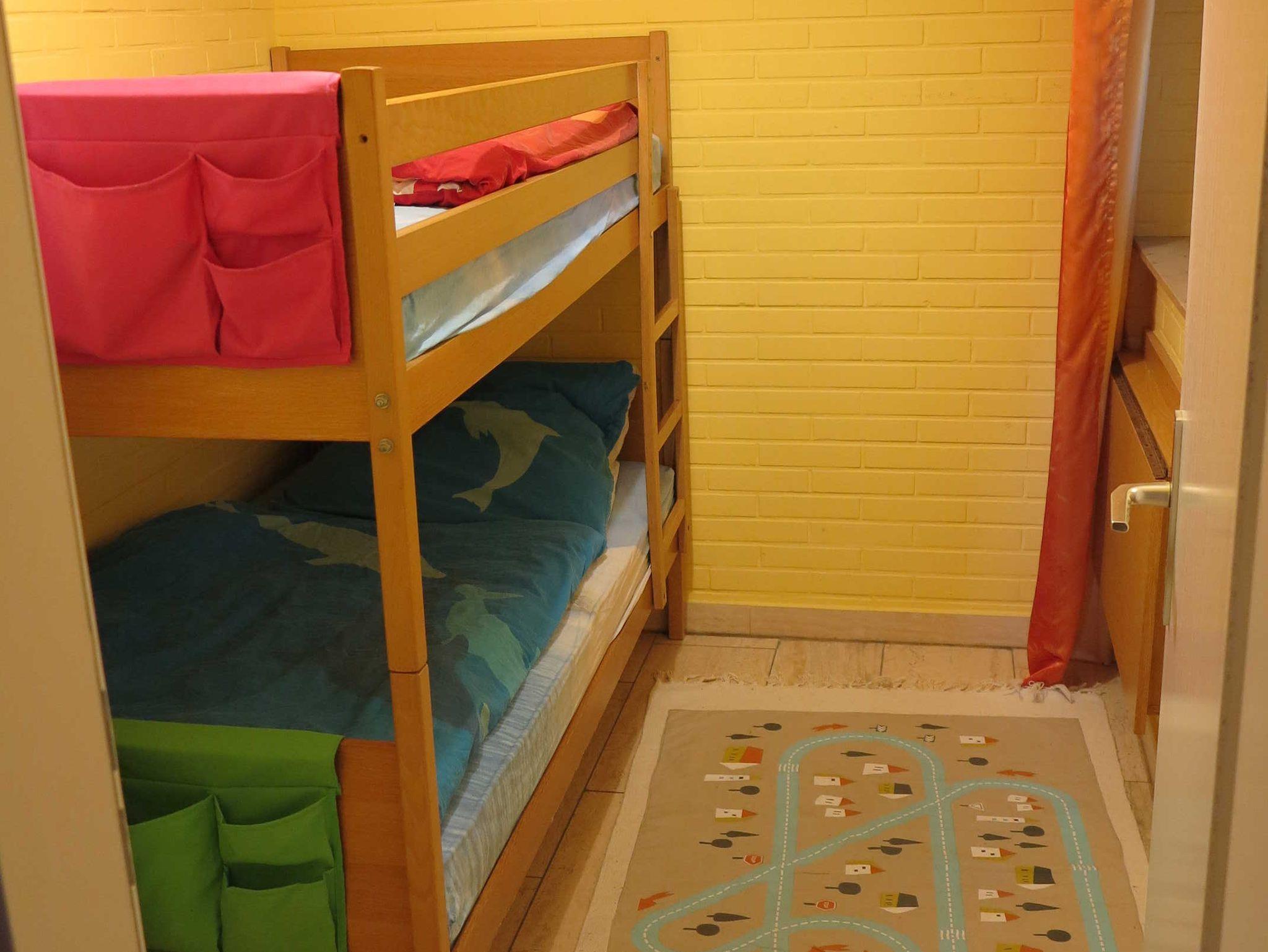 Im Kinderzimmer befindet sich ein Etagenbett, dass ebenfalls eine Länge von 2 Metern hat.