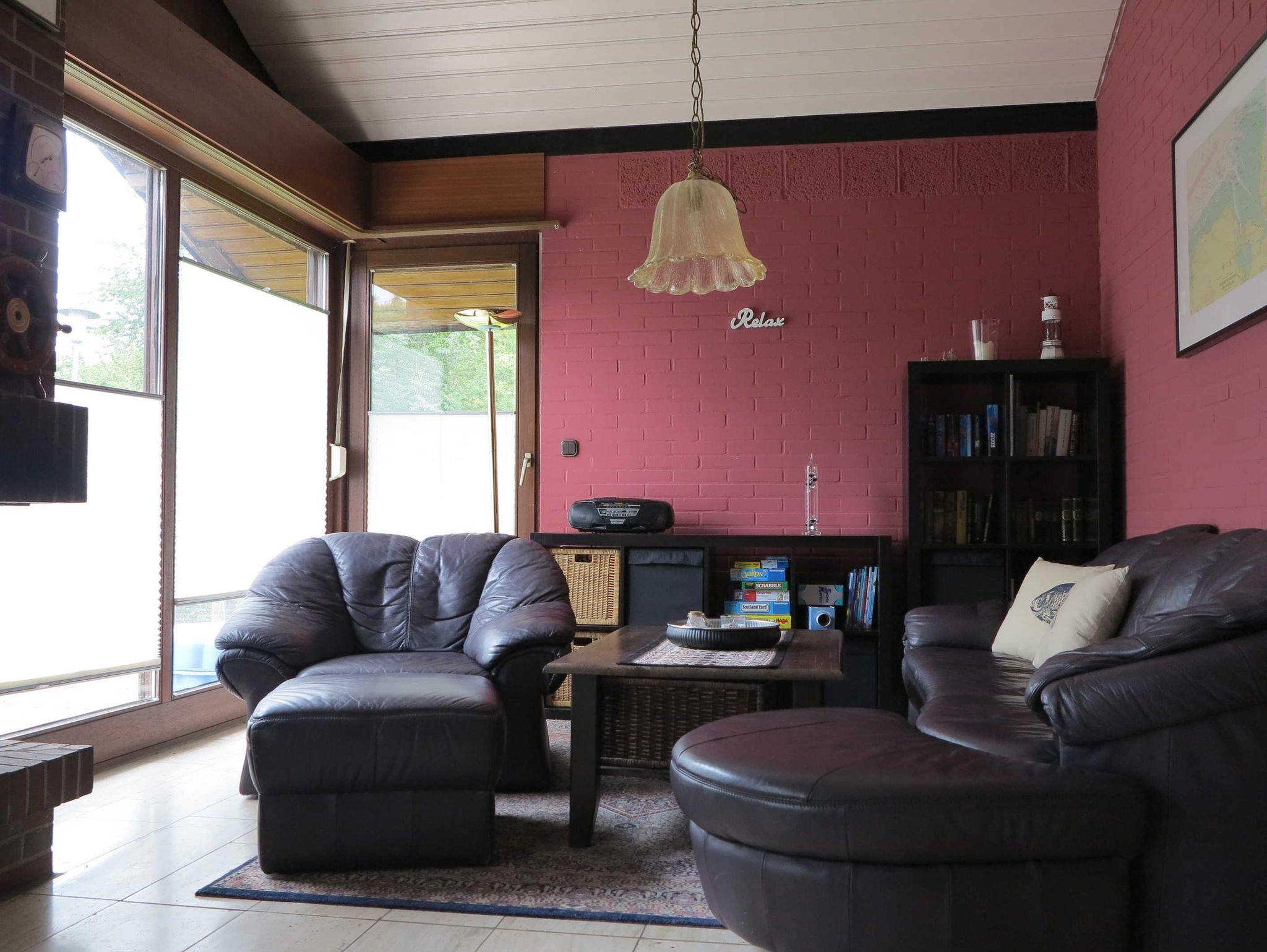 Im Wohnzimmer stehen eine große Couch, sowie ein Sessel, die zum Verweilen einladen. Vorhanden sind natürlich ein SAT-Fernseher, ein DVD-Player und eine Micro-Stereo-Anlage.