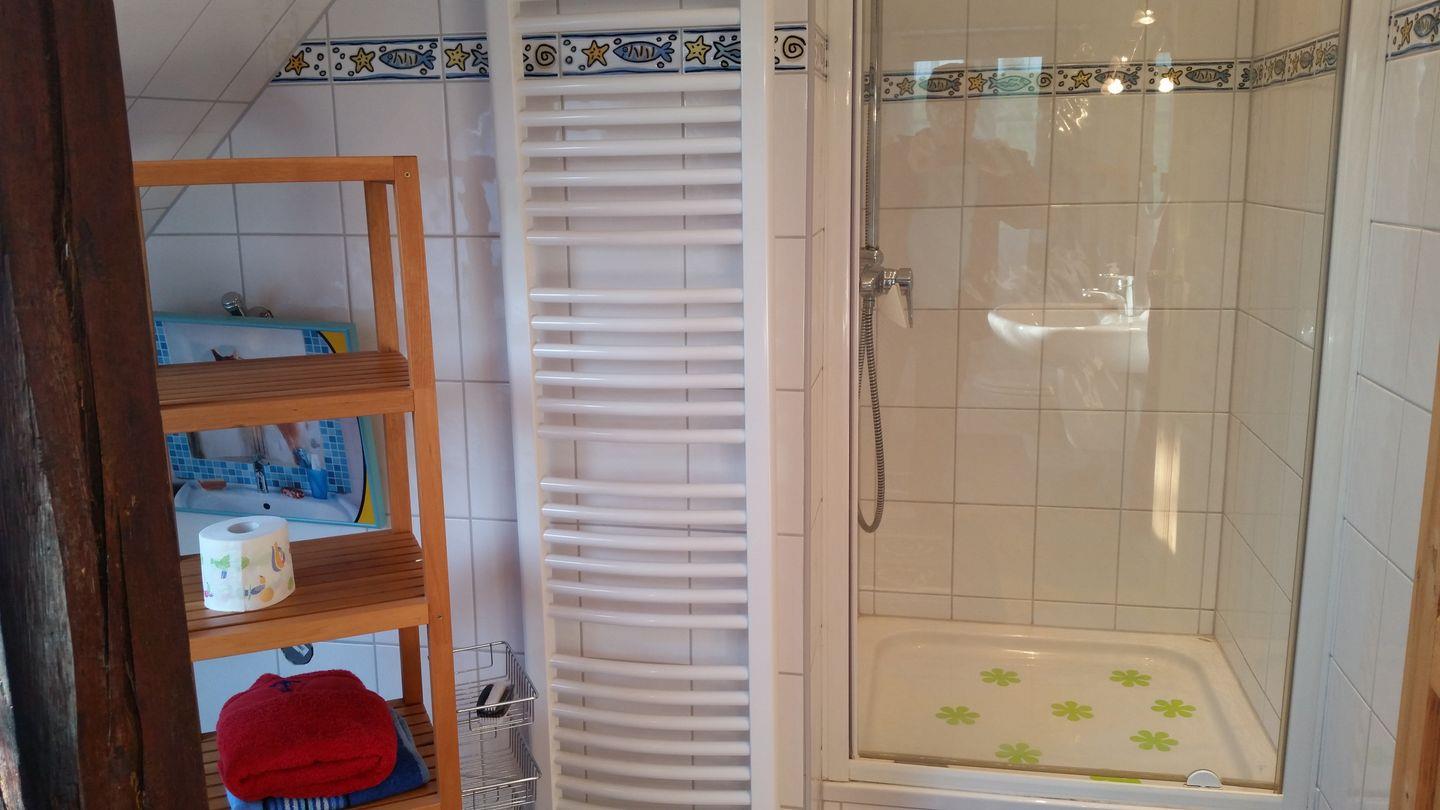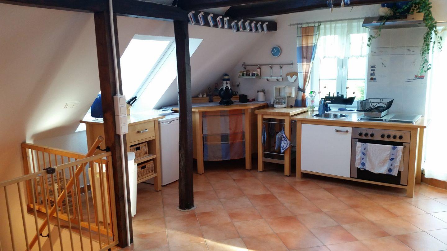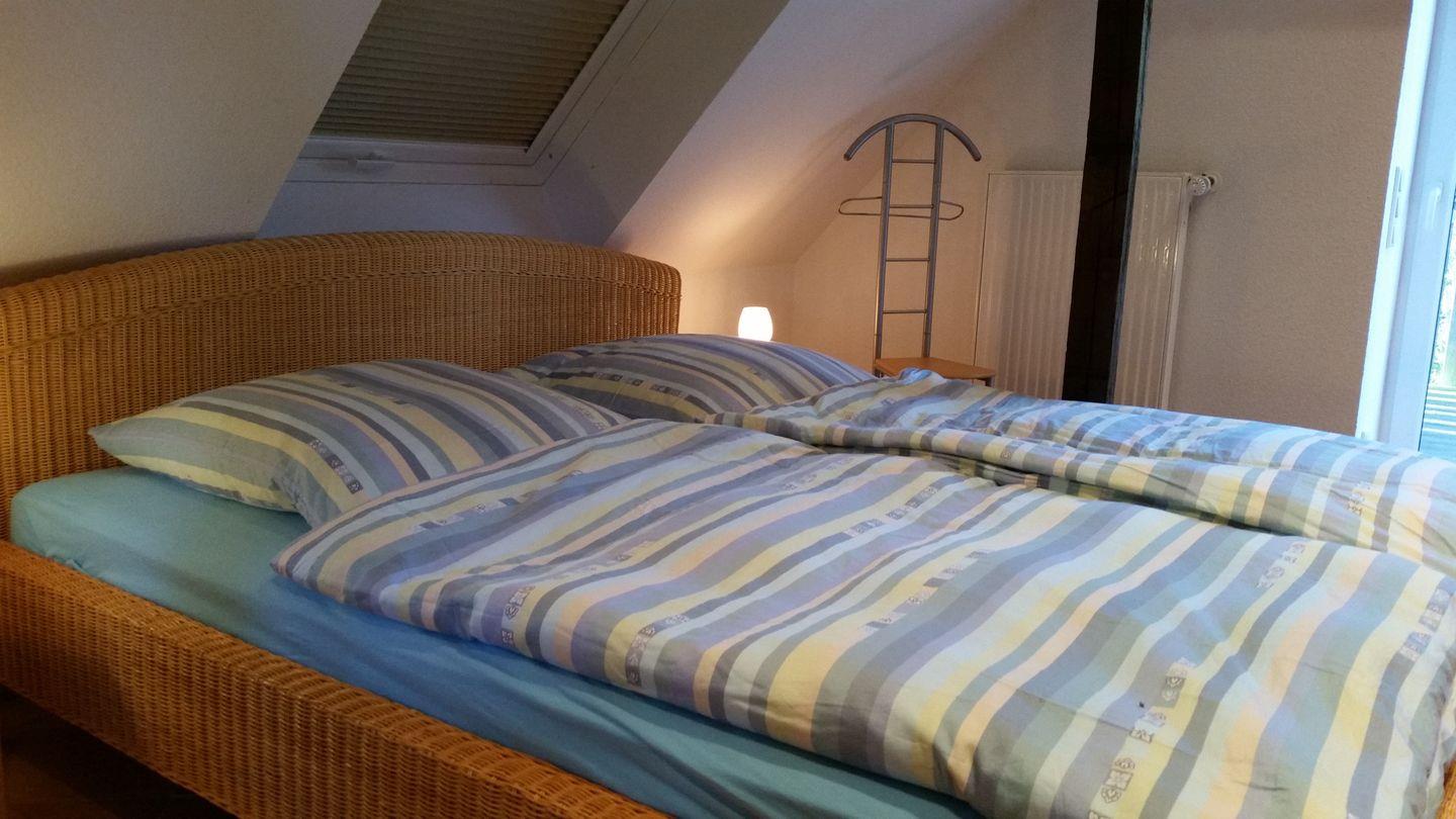 Diese gemütliche Ferienwohnung befindet sich im 1. Obergeschoß eines 2-Parteien-Hauses. Das Erdgeschoss wird ebenfalls als Ferienwohnung vermietet. Die Wohnung hat einen großen und offen gestalteten Wohn- Eß- und Kochbereich, einen Schlafraum mit einem Doppelbett und ein modernes Tageslichtbad mit einer großzügigen Eck-Badewanne, eine separate Dusche, ein großzügiges Waschbecken und ein wandhängendes WC. (Bitte Bettwäsche und Handtücher mitbringen. Optional können Sie diese kostenpflichtig dazubuchen).