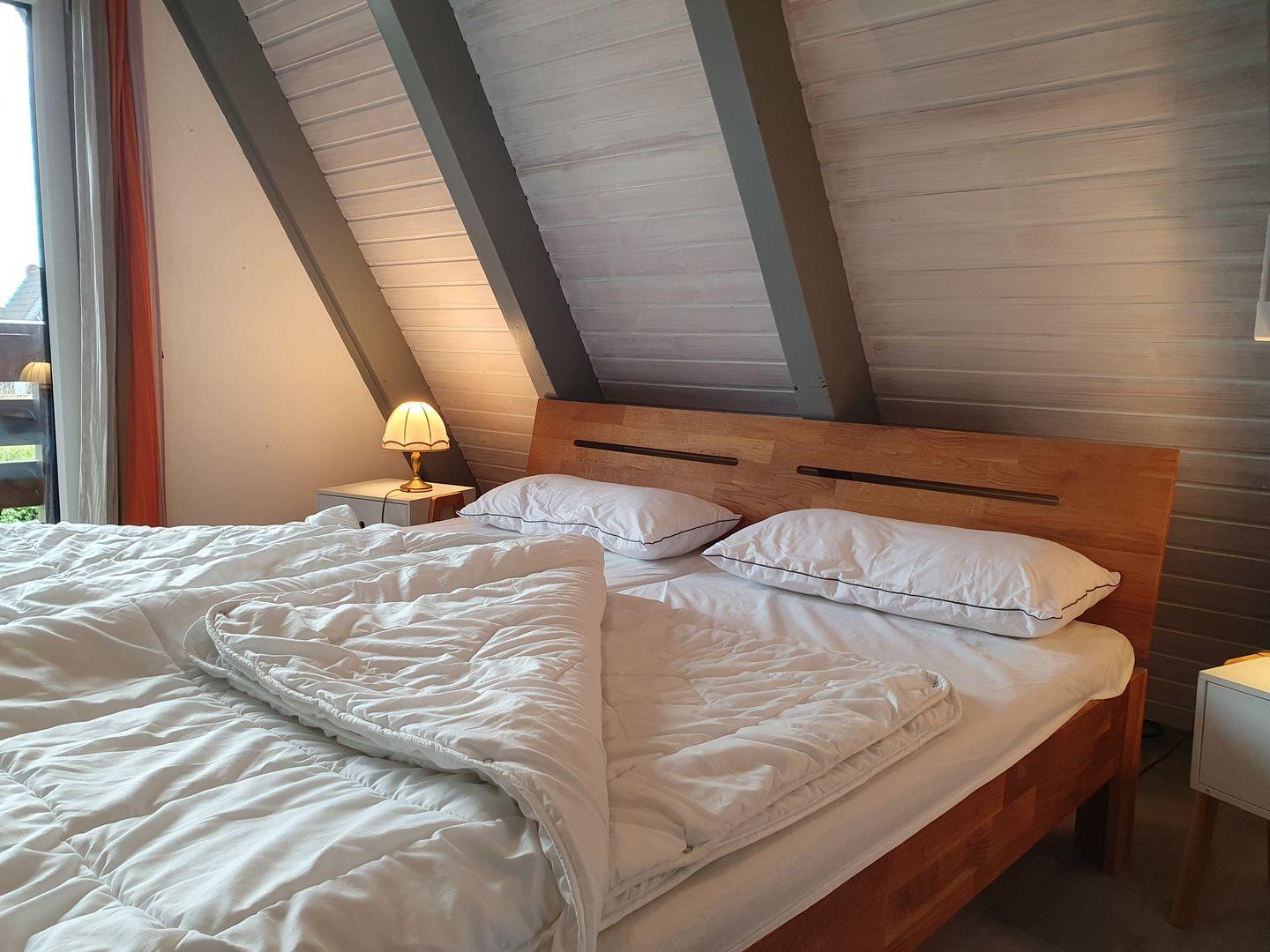 Dieses gemütliche Nurdach-Ferienhaus hat zwei Schlafräume im Obergeschoss und ist daher für bis zu 4 Personen geeignet.
