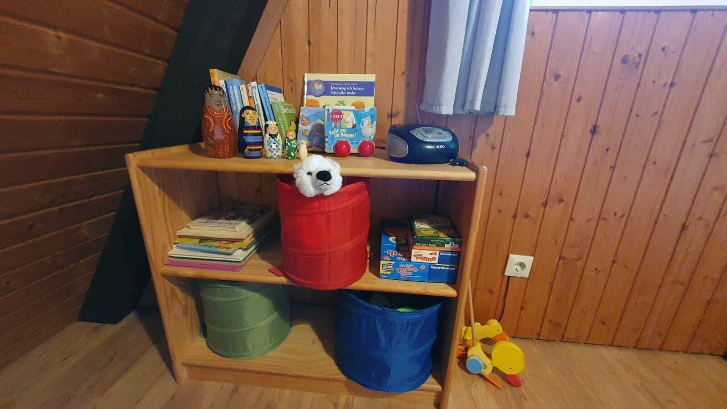 Die zwei Schlafräume im Obergeschoss bieten für insgesamt 5 Personen ausreichend Platz: Das Elternschlafzimmer verfügt über ein Doppelbett (180 x 200 cm) und im 2. Schlafzimmer finden Sie ein Doppelbett (140 x 200 cm) und ein Einzelbett (100 x 200 cm).