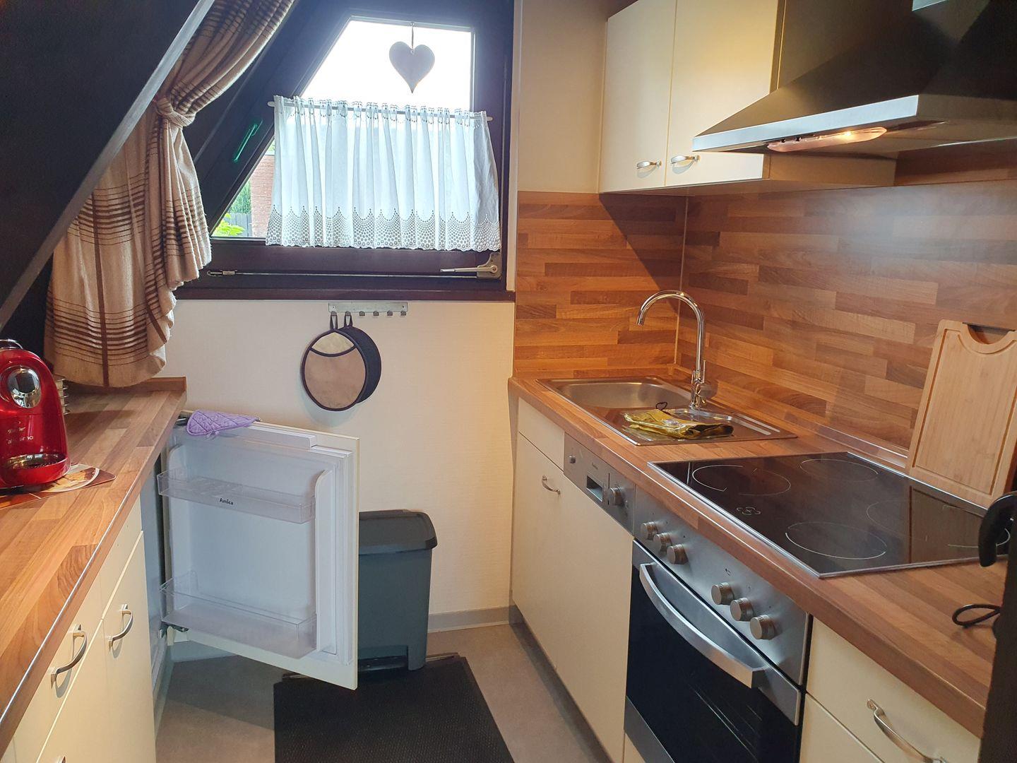 Das Nurdachhaus bietet Platz für bis zu 4 Personen und verfügt über eine voll ausgestattete Küche, ein komfortables Wohnzimmer, zwei Schlafzimmer und ein modernes Badezimmer mit Dusche. Die Terrasse lädt zum Verweilen im Freien ein und bietet einen atemberaubenden Ausblick über die Wiesen und Weiden in Richtung Burhave.
