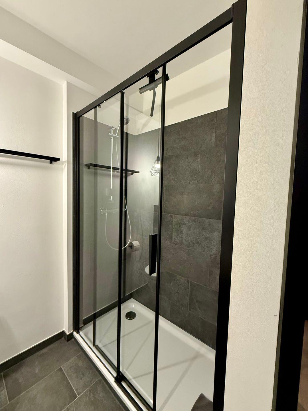 Das moderne Badezimmer mit Dusche bietet dir ausreichend Ablagemöglichkeiten für deine persönlichen Kosmetikprodukte. Handtücher und einen Haartrockner bekommst du von uns gestellt.
