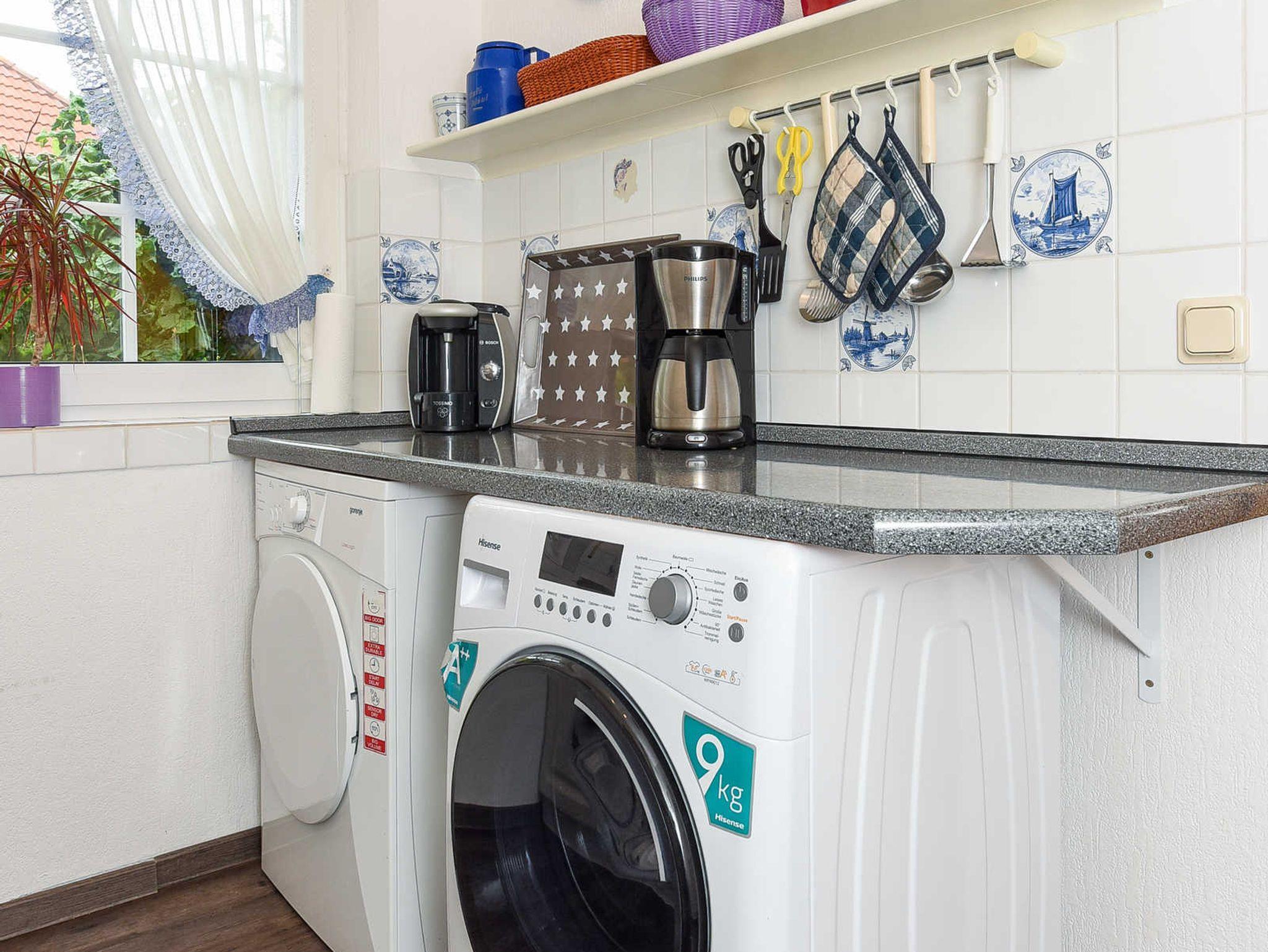 Es ist gemütlich eingerichtet und freundlich gestaltet, verfügt über eine eigene Terrasse und ist sehr gut ausgestattet mit allem, was man so im Urlaub benötigt. Zum Beispiel gibt es eine komplett eingerichtete Küche sowie z. B. kostenlos nutzbare Waschmaschine und Wäschetrockner sowie Vieles mehr.