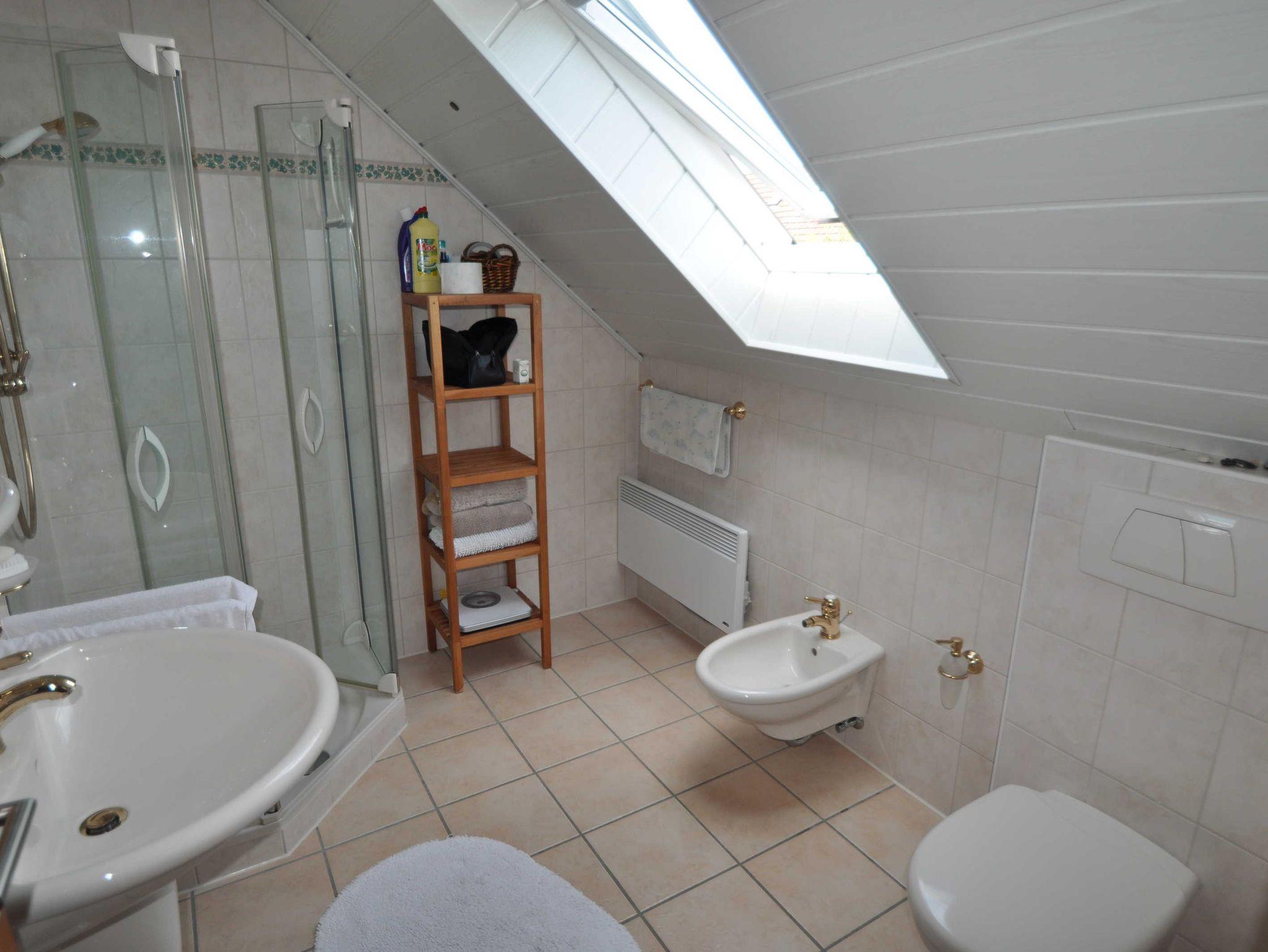 Im Erdgeschoss befinden sich ein großzügiger und gemütlich eingerichteter Wohnraum mit Essecke und Zugang zu Terrasse und Garten. Eine separate Küche mit neuwertigen Einbaugeräten und kleinem Essbereich, ein Gäste-WC, sowie ein Hauswirtschaftsraum. Vom Flur führt eine Steintreppe ins Obergeschoss, wo sich ein Schlafzimmer mit einem Doppelbett, ein Schlafzimmer mit zwei Einzelbetten und ein modernes Duschbad mit WC und Bidet befinden. Die Doppelhaushälfte bietet mit über 90m² ausreichend Platz für 4 Personen und ein Baby/Kleinkind. WLAN steht Ihnen kostenlos zur Verfügung.