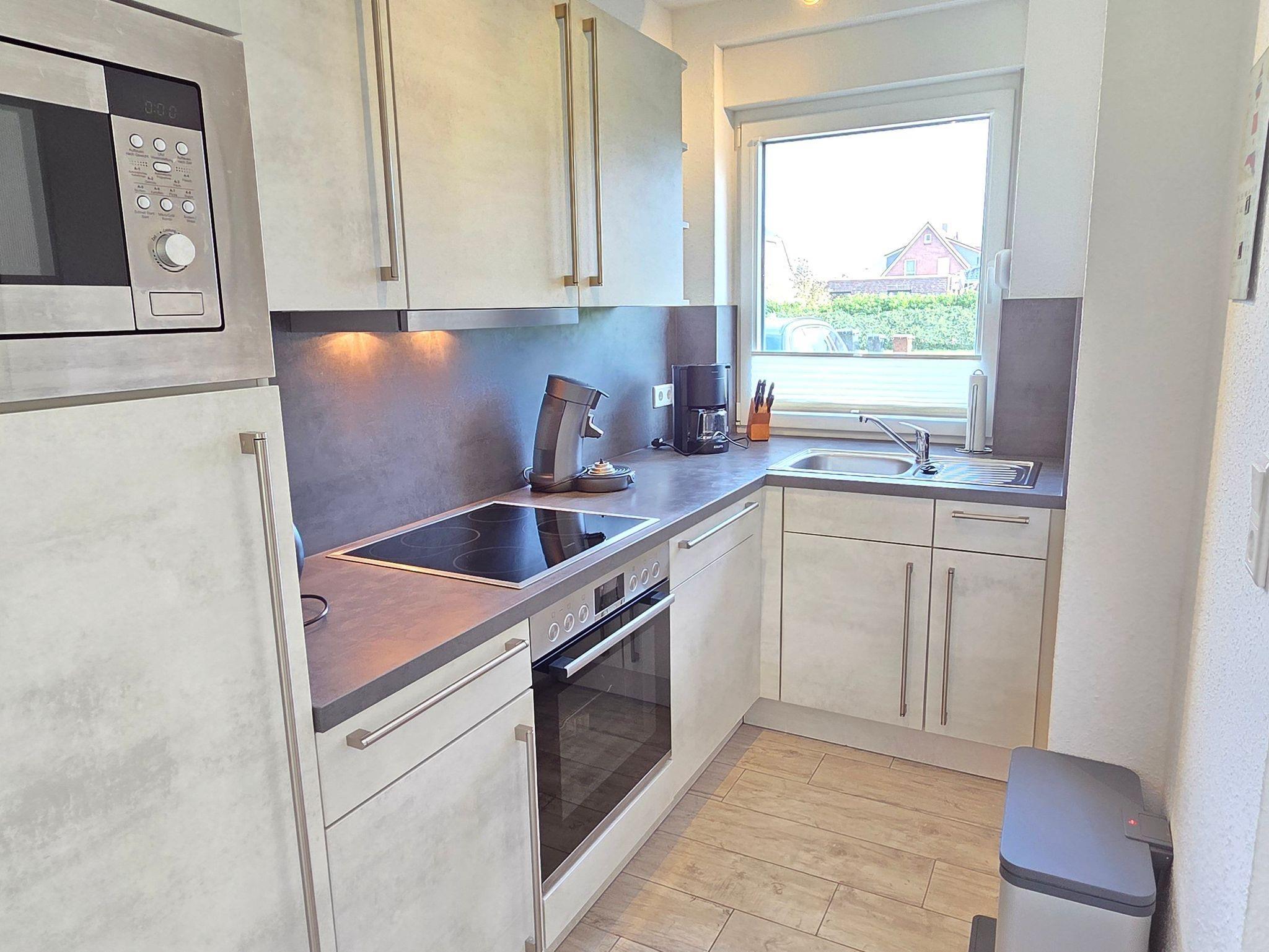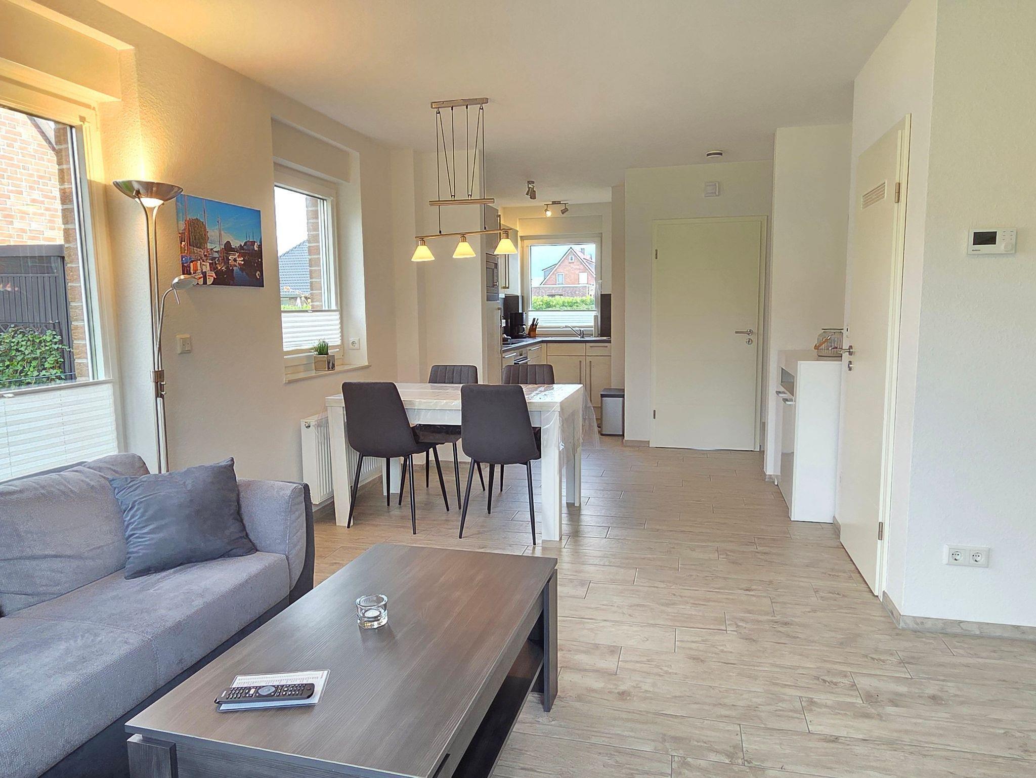 Im Erdgeschoss der ca. 70m² großen Doppelhaushälfte befindet sich ein großzügiger und freundlicher Bereich für Kochen, Essen und Wohnen. Zudem ist ein Gäste-WC vorhanden. Das Obergeschoss verfügt über zwei Schlafzimmer (ein Doppelbett und zwei Einzelbetten) sowie über ein großzügiges Duschbad und bietet somit ausreichend Platz für die ganze Familie. WLAN steht Ihnen kostenlos zur Nutzung zur Verfügung. Alle Fenster sind mit Rollläden ausgestattet und im gesamten Objekt sind Fliesen bzw. Laminat verlegt. Eine hochwertige Ausstattung sorgt für entsprechenden Wohnkomfort.