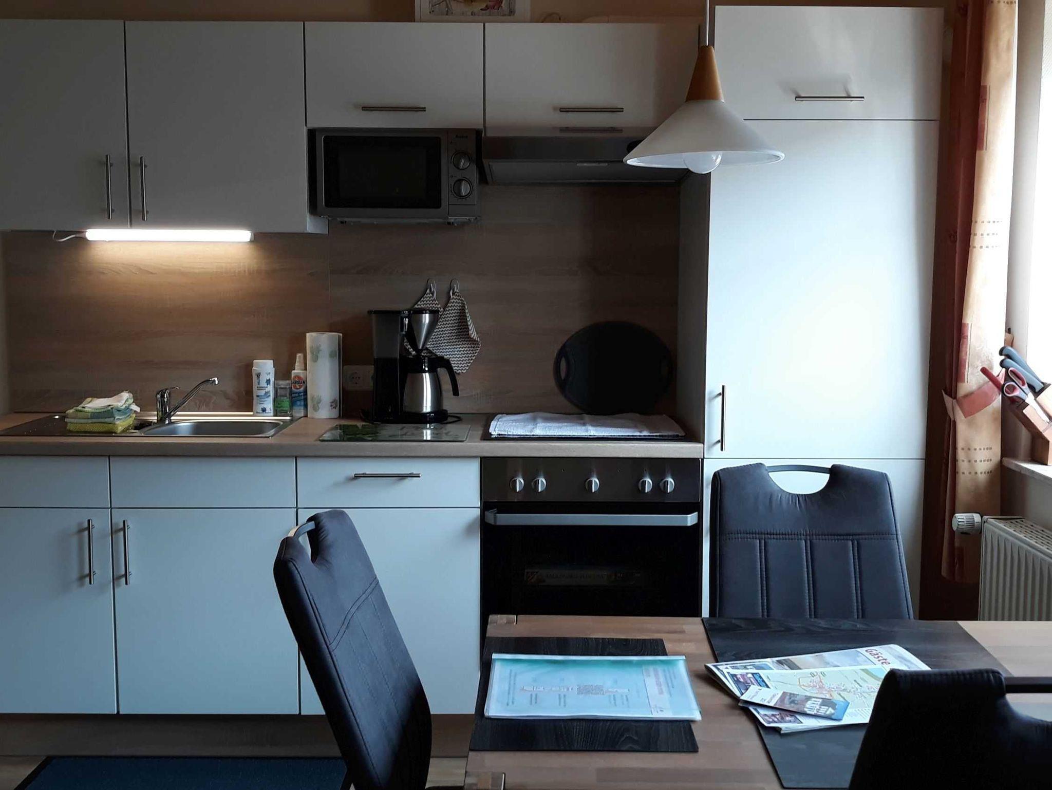 Die Ferienwohnung mit 2 Schlafzimmern ist allergikergerecht eingerichtet und bietet ein Bad mit Dusche/WC und Reisefön, das Schlafzimmer mit Einzelbett hat zusätzlich eine gemütliche Leseecke. Die Wohnküche ist mit einer komplett eingerichteter Einbauküche und hellem Essplatz ausgestattet. Der Raum ist mit Sofaecke und Tisch ebenfalls liebevoll eingerichtet. Der Fußboden trägt durch den hellen Vinyl-Laminat zum Wohlbefinden bei.