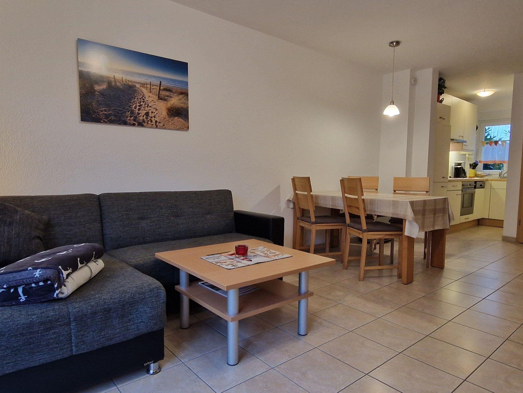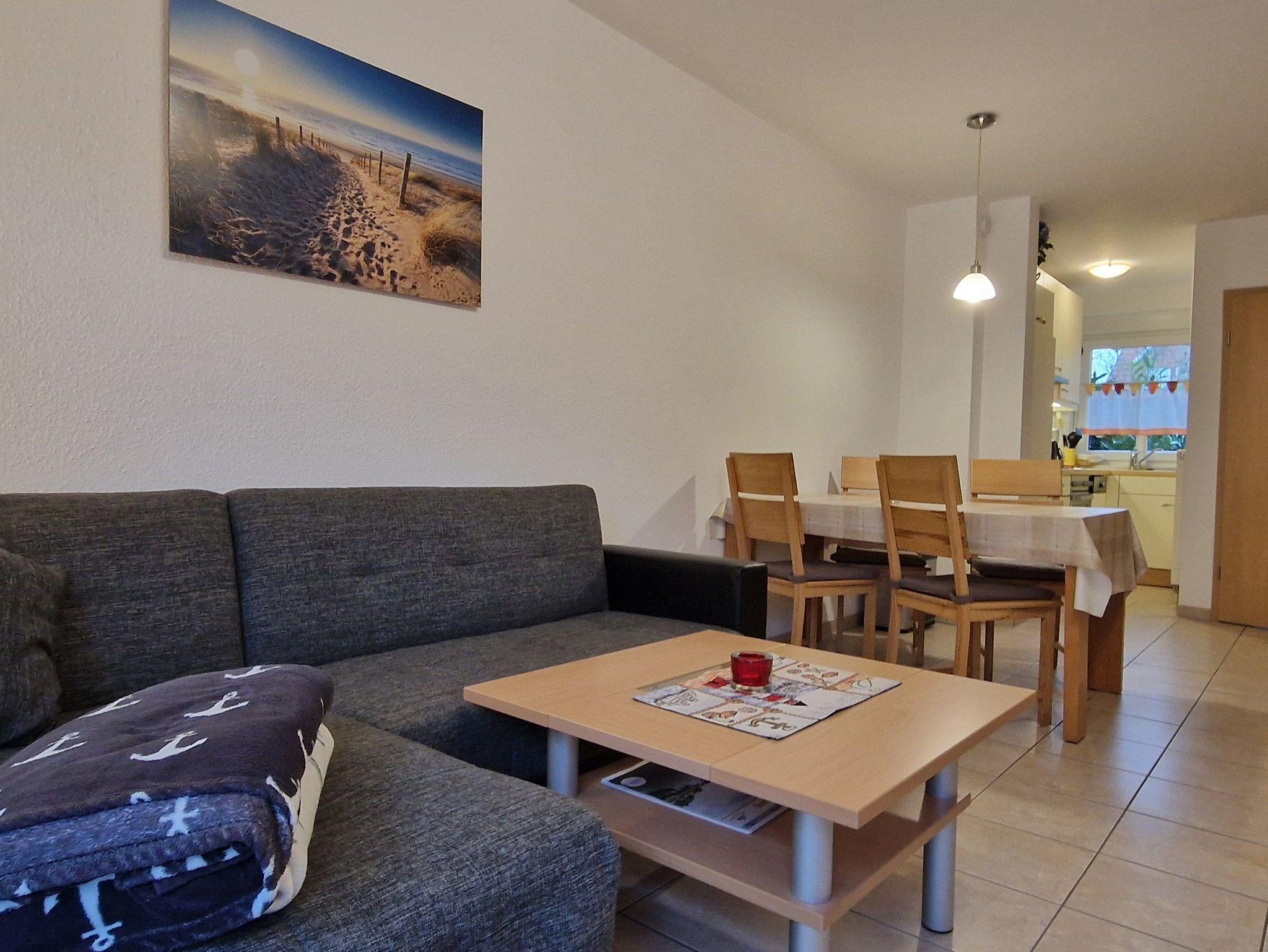 Das geschmackvoll eingerichtete Reihenhaus bietet ausreichend Platz für bis zu 4 Personen und ein Baby/Kleinkind. Im Erdgeschoss befindet sich ein großzügiges Wohnzimmer mit angrenzendem Essbereich, eine moderne, offene Küche sowie ein Gäste-WC. Das Obergeschoss (Treppenschutzgitter oben) verfügt über zwei Schlafzimmer mit einem Doppelbett bzw. zwei Einzelbetten und einem Badezimmer mit Dusche und WC. Alle Fenster sind mit Rollläden, die Böden mit Fliesen ausgestattet. WLAN steht Ihnen kostenlos zur Verfügung.