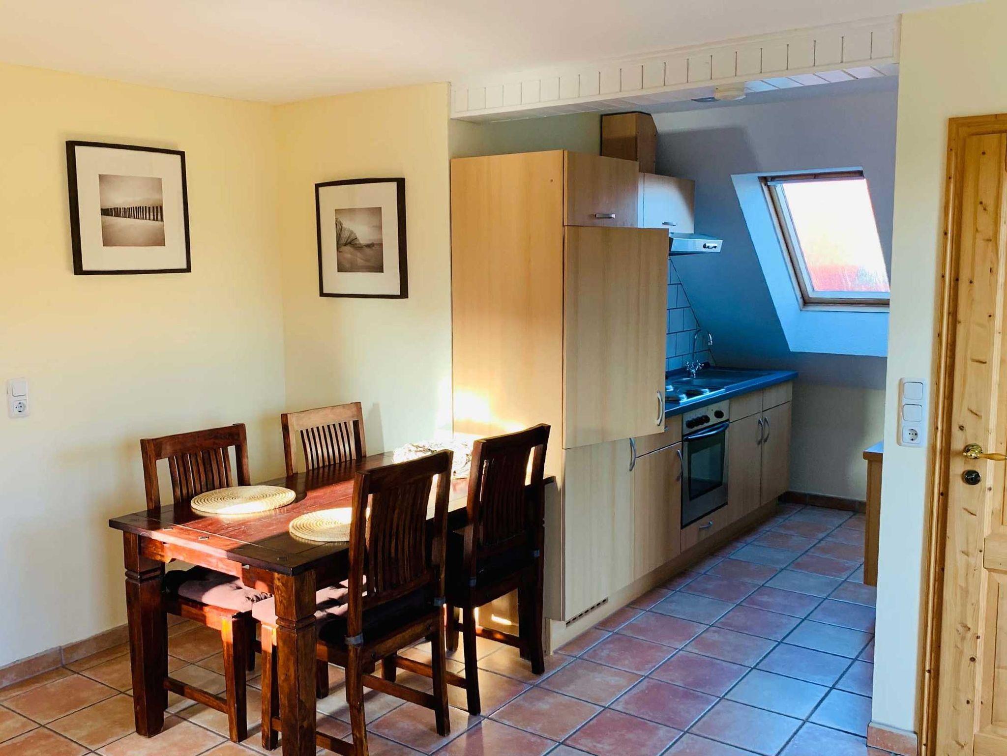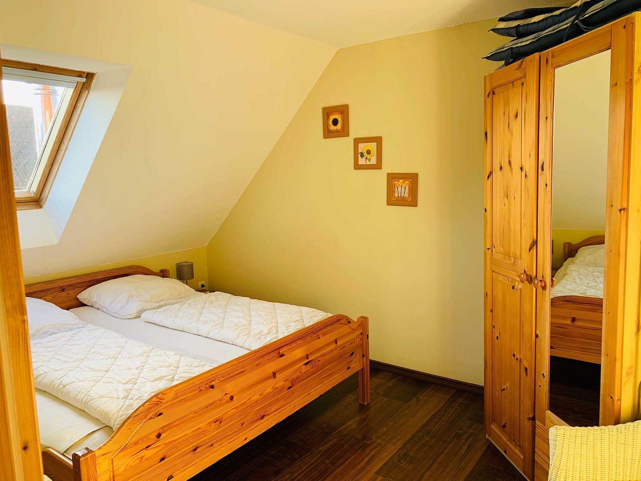 Großzügige und gemütlich eingerichtete Nichtraucher-Ferienwohnung für 2 Personen und 1 Kleinkind mit großem (ca. 10qm) Balkon. Die Wohnung besteht aus einem Schlafzimmer mit Doppelbett (Zustellmöglichkeit für ein Kinderbett), Wohnzimmer mit Essbereich, komplett eingerichteter Küche, Kinderhochstuhl. Haustiere sind nicht gestattet. Pkw-Einstellplatz vorhanden. Fahrräder können untergestellt werden.