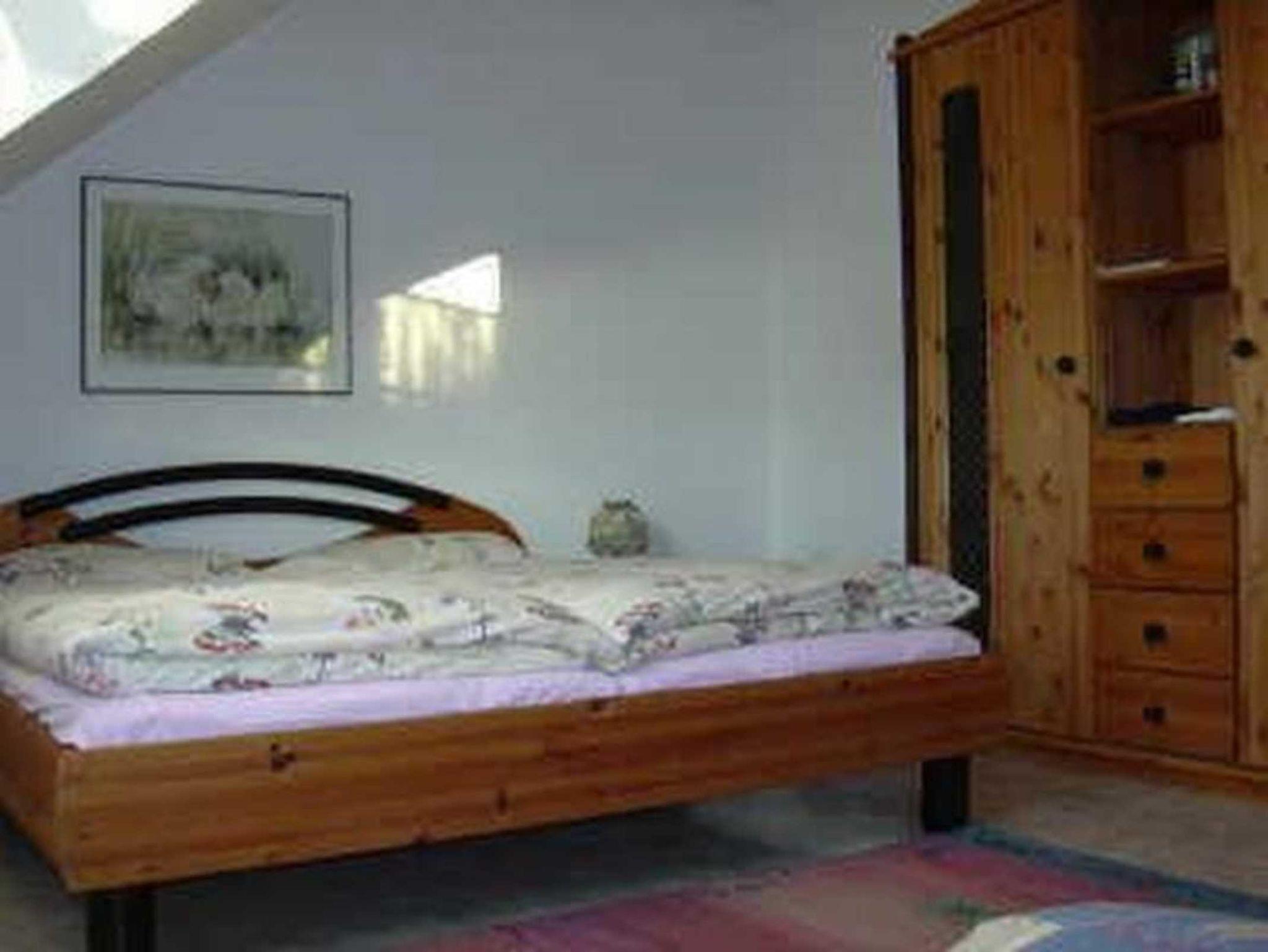 Gemütliche Ferienwohnung, 1. Etage, teils schräge Wände, 1 Elternschlafzimmer, 1 Kinderzimmer mit Etagenbett, keine Fahrräder.