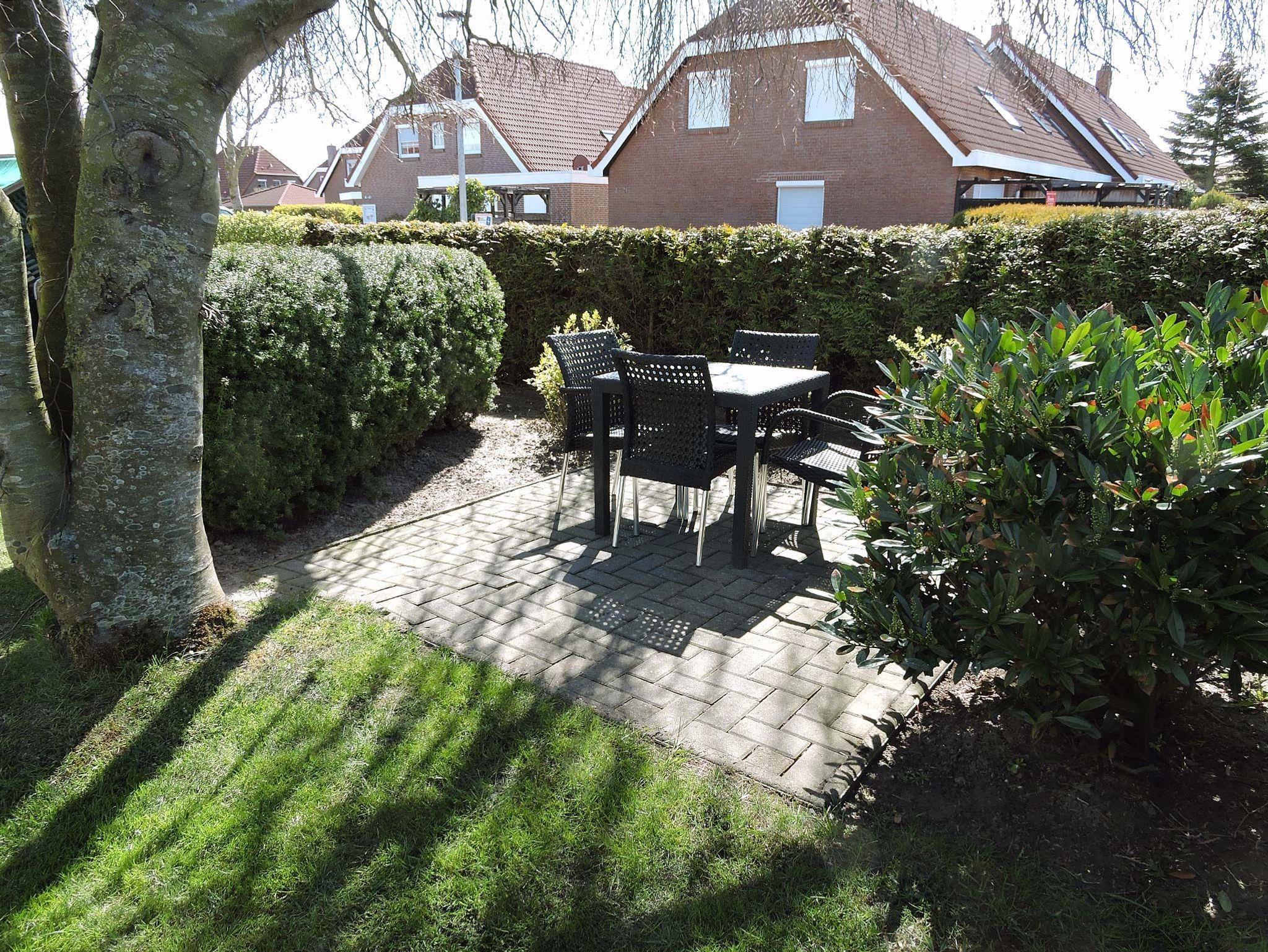 Ferienwohnunng für 4 Erwachsene und ein Kleinkind im Obergeschoss. Die Wohnung bietet Wohn- und Esszimmer, offene, komplett ausgestatte Küche, 2 Schlafzimmer jeweils mit Doppelbett sowie Bad mit Dusche und WC. Im Garten steht eine Terrasse mit Strandkorb und Grillmöglichkeit zur Verfügung.