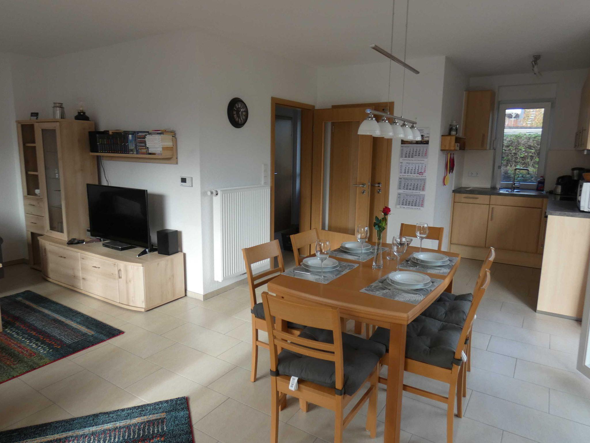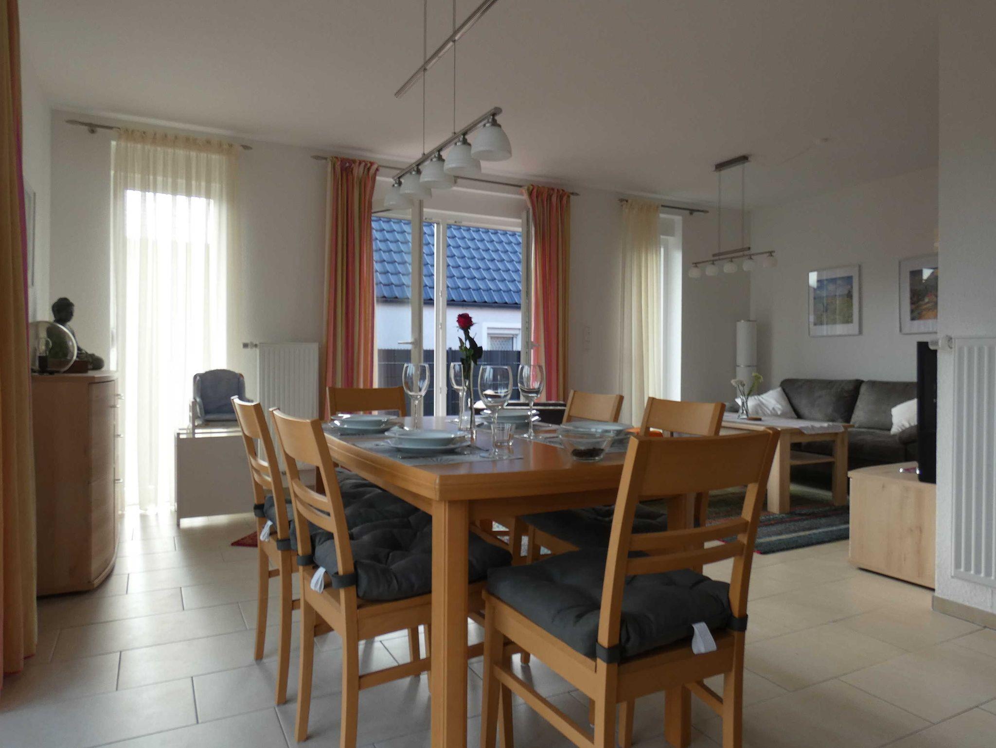 Wohn- Esszimmer (Sitzecke, Esstisch, Kinderhochsitz, LED-HD-Sat-Fernseher, Stereo-System Radio, CD, iPhone-Dock)