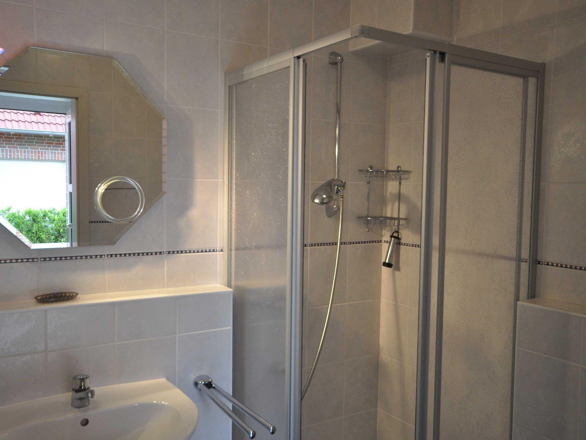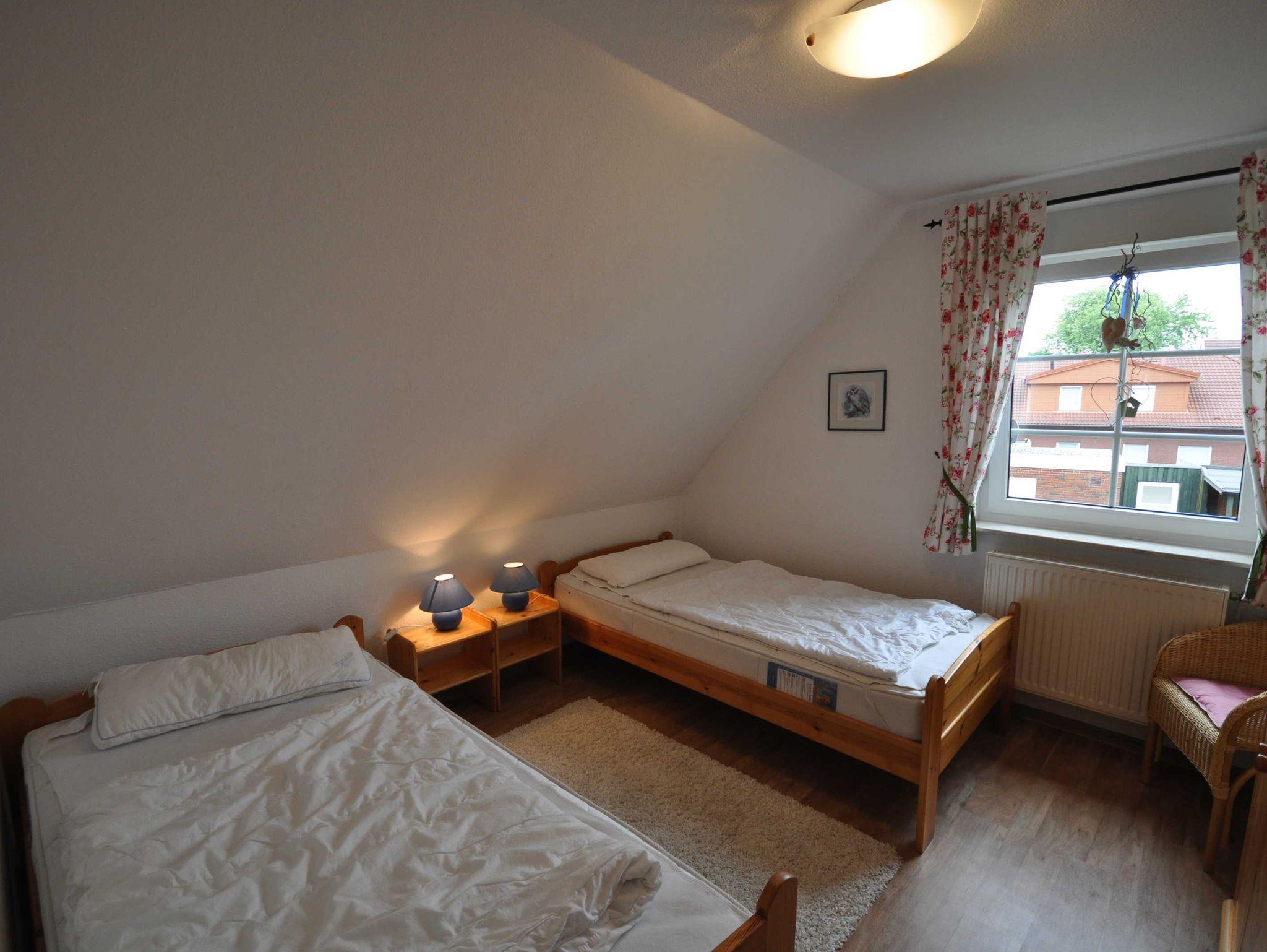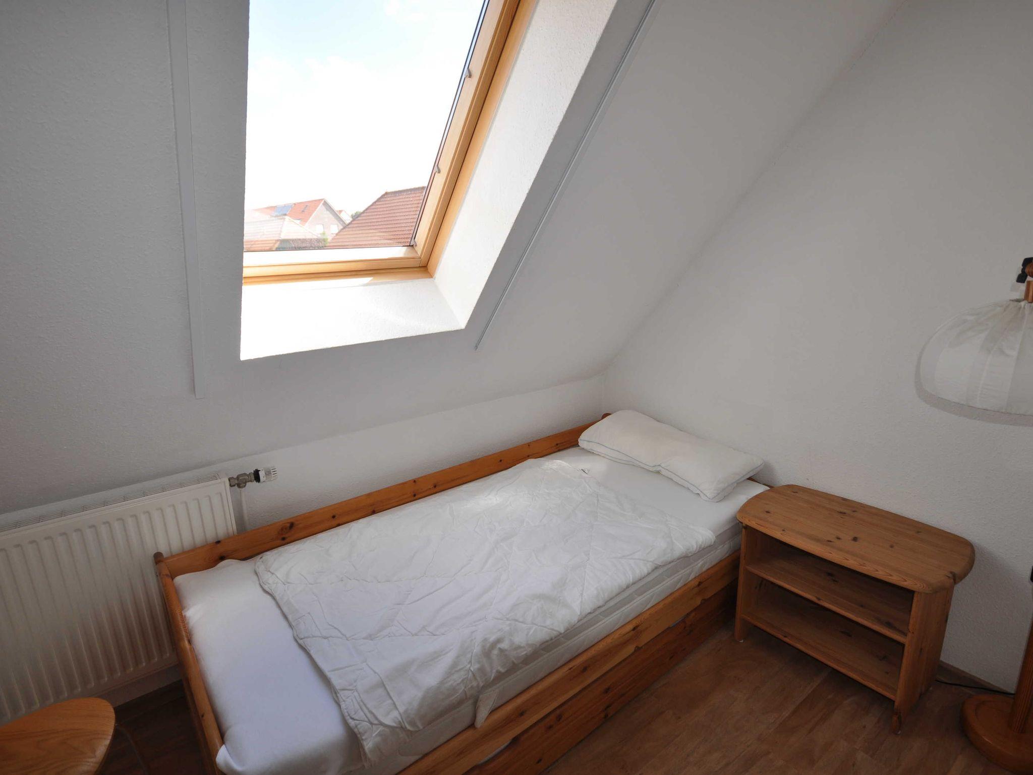 Diese Doppelhaushälfte bietet mit einer großzügigen Raumaufteilung sowie drei Schlafzimmern ausreichend Platz für bis zu 5 Personen und ein Baby/Kleinkind. Im Erdgeschoss befinden sich ein großer Wohn- und Essbereich mit einer offenen Küche und ein Dusch/WC. Das Obergeschoss ist in drei Schlafzimmer (1x1 Doppelbett, 1x2 Einzelbetten, 1x1 Einzelbett inkl. Ausziehfunktion) und ein Badezimmer mit Dusche und WC aufgeteilt. Alle Fenster sind mit Rollläden, die Böden mit Fliesen bzw. Laminat ausgestattet. WLAN steht Ihnen kostenfrei zur Verfügung. Das Ferienhaus besticht durch eine geschmackvolle und dem Standard entsprechende Komplettausstattung.