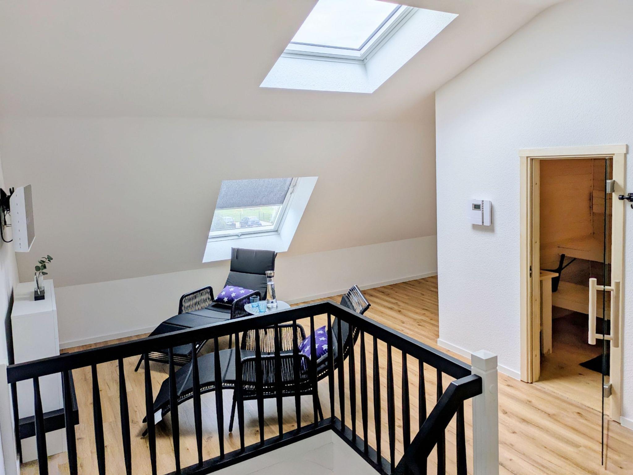 Das Highlight: der exklusive Wellnessbereich in der obersten Etage mit großzügiger Sauna und Kaminofen ? perfekt für entspannte Abende nach einem erlebnisreichen Tag.