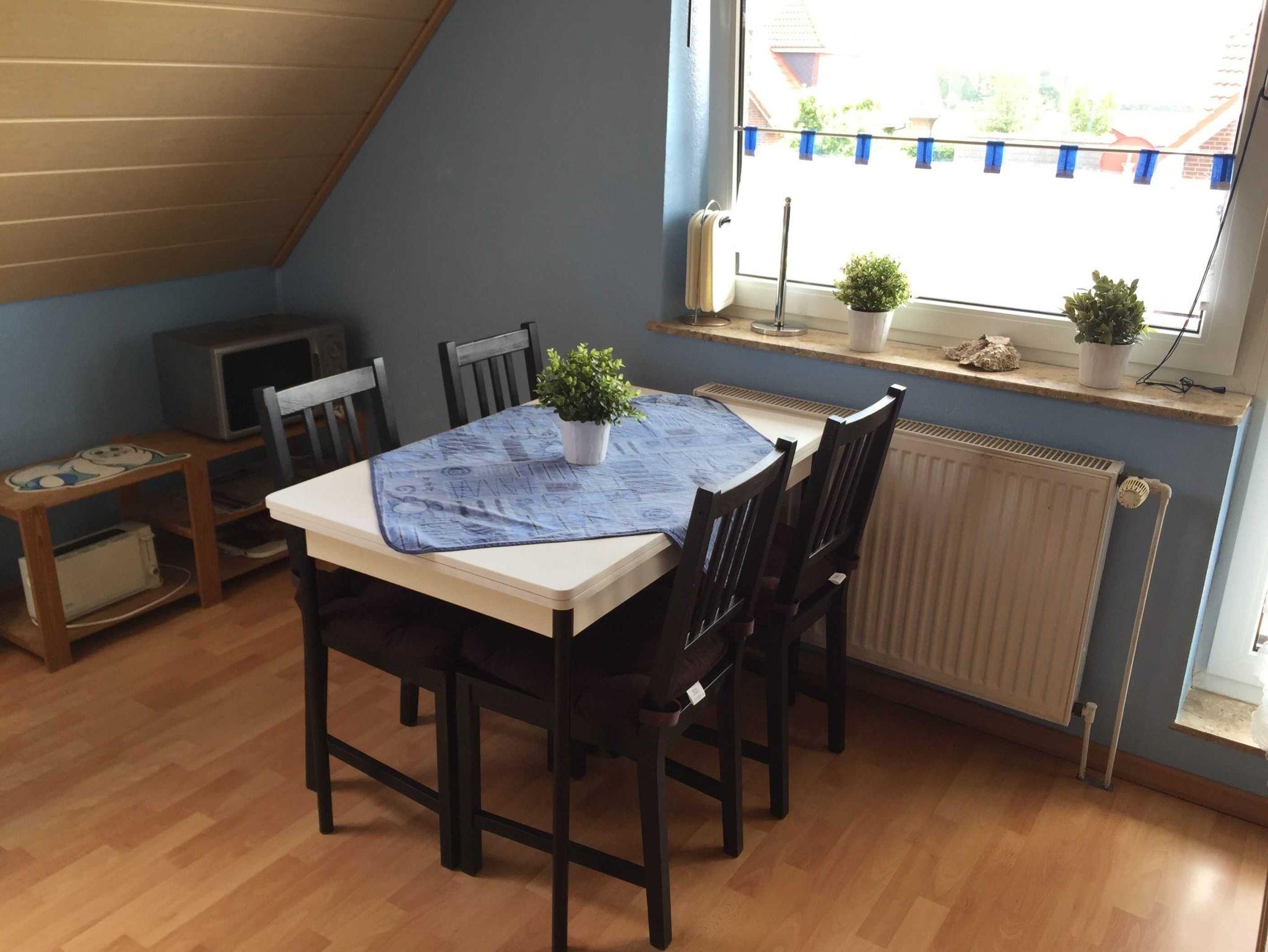 Gemütliche 60qm Nichtraucherwohnung im Obergeschoss für bis zu 4 Personen, separater Eingang, Wohnzimmer mit voll eingerichteter Küchenzeile, großer Balkon zur Südseite, 1 Schlafzimmer mit Doppelbett (2m), 1 Schlafzimmer mit 2 Einzelbetten, Waschmaschine, Übernachtungspreise .Mindestbuchung 5 Nächte.