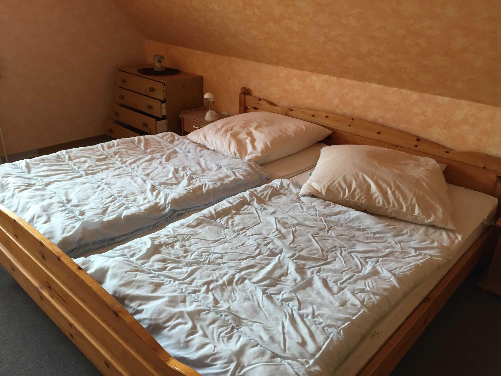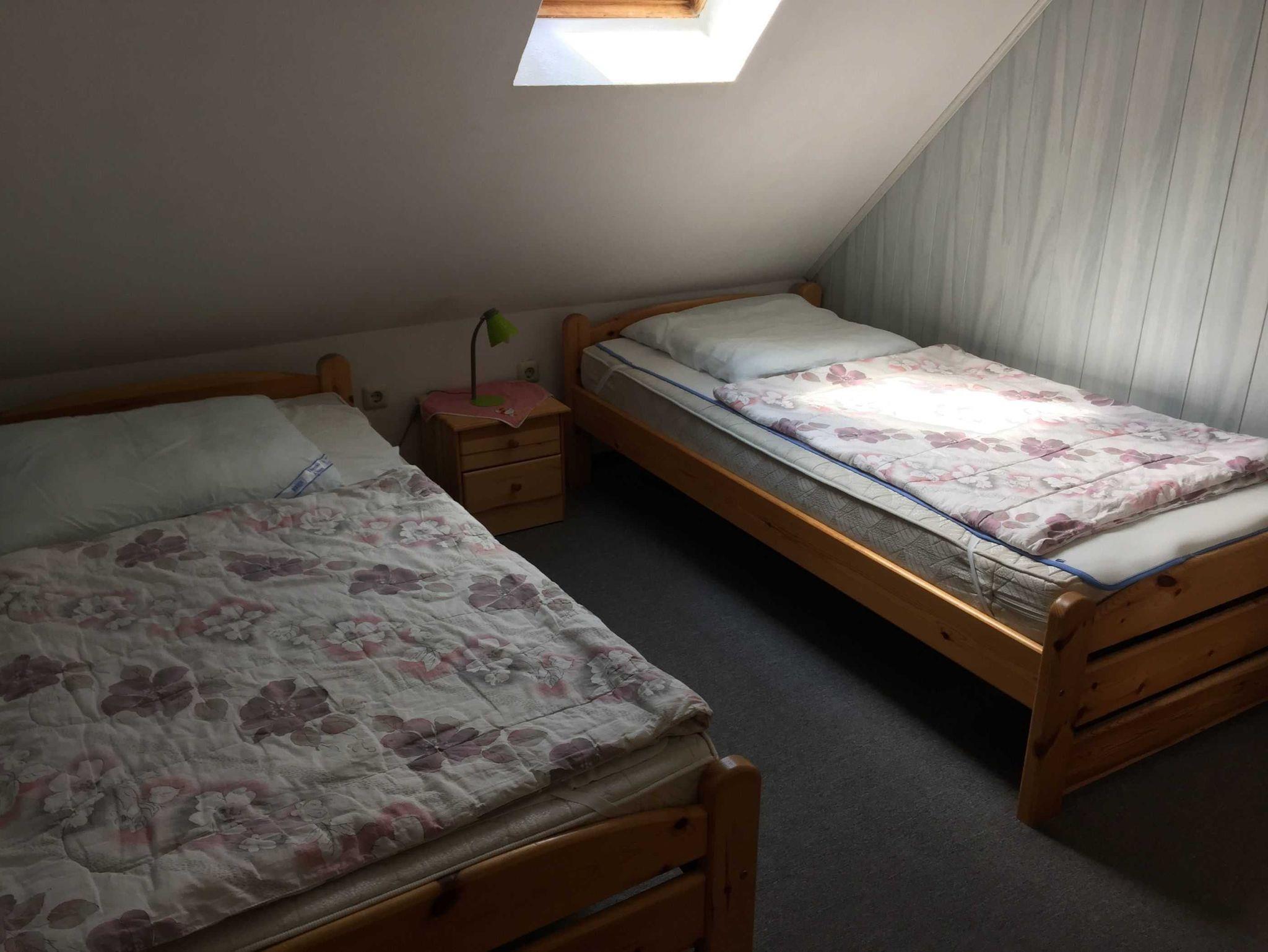 Gemütliche 60qm Nichtraucherwohnung im Obergeschoss für bis zu 4 Personen, separater Eingang, Wohnzimmer mit voll eingerichteter Küchenzeile, großer Balkon zur Südseite, 1 Schlafzimmer mit Doppelbett (2m), 1 Schlafzimmer mit 2 Einzelbetten, Waschmaschine, Übernachtungspreise inklusive Endreinigung.