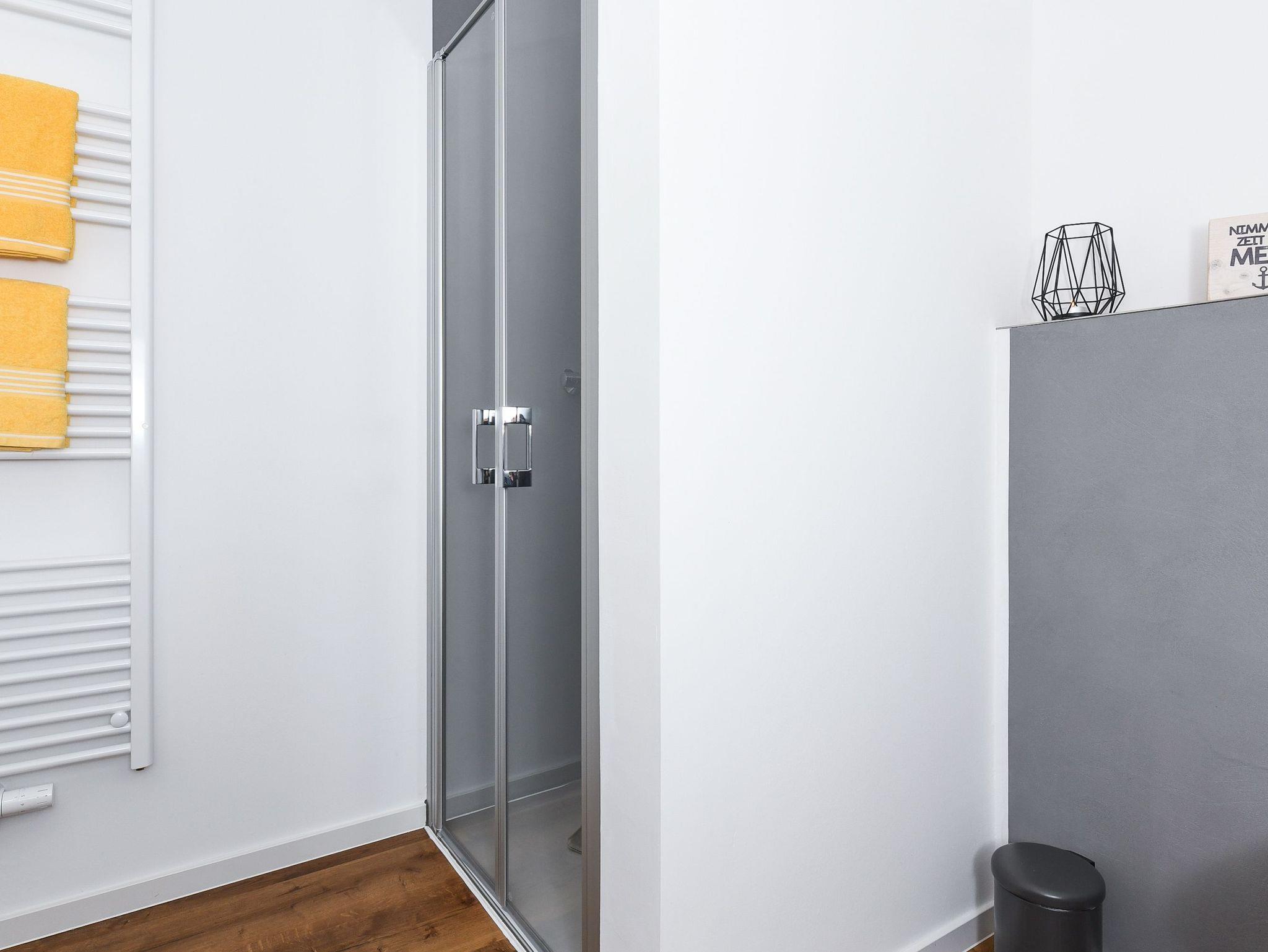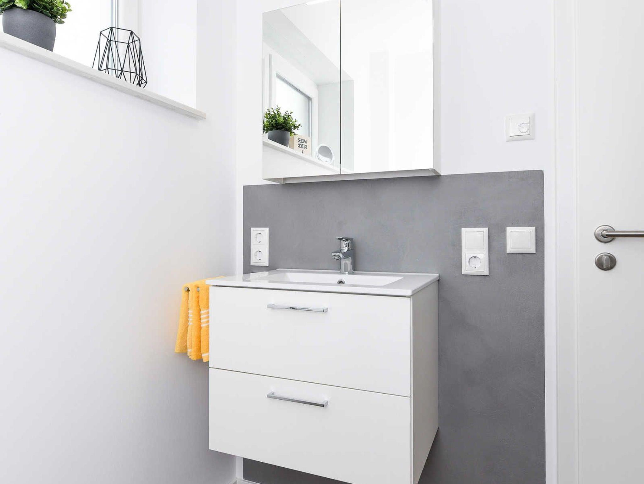 zweites Badezimmer mit Dusche, Waschtisch und WC