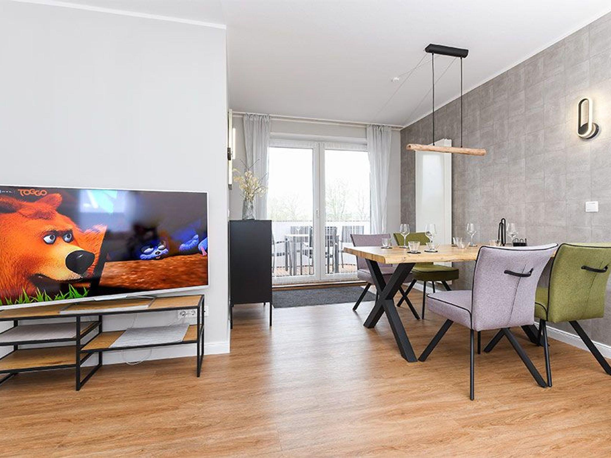 Die Ferienwohnung Deichkrone ist für zwei bis vier Personen mit zusätzlichem Kleinkind geschmackvoll für Sie eingerichtet und modern ausgestattet, zum Beispiel ist Mikrowelle und Geschirrspülmaschine vorhanden, eine Waschmaschine und ein Wäschetrockner stehen zum Benutzen für alle Gäste zur Verfügung. Die Wohnung verfügt über einen sonnigen Balkon.