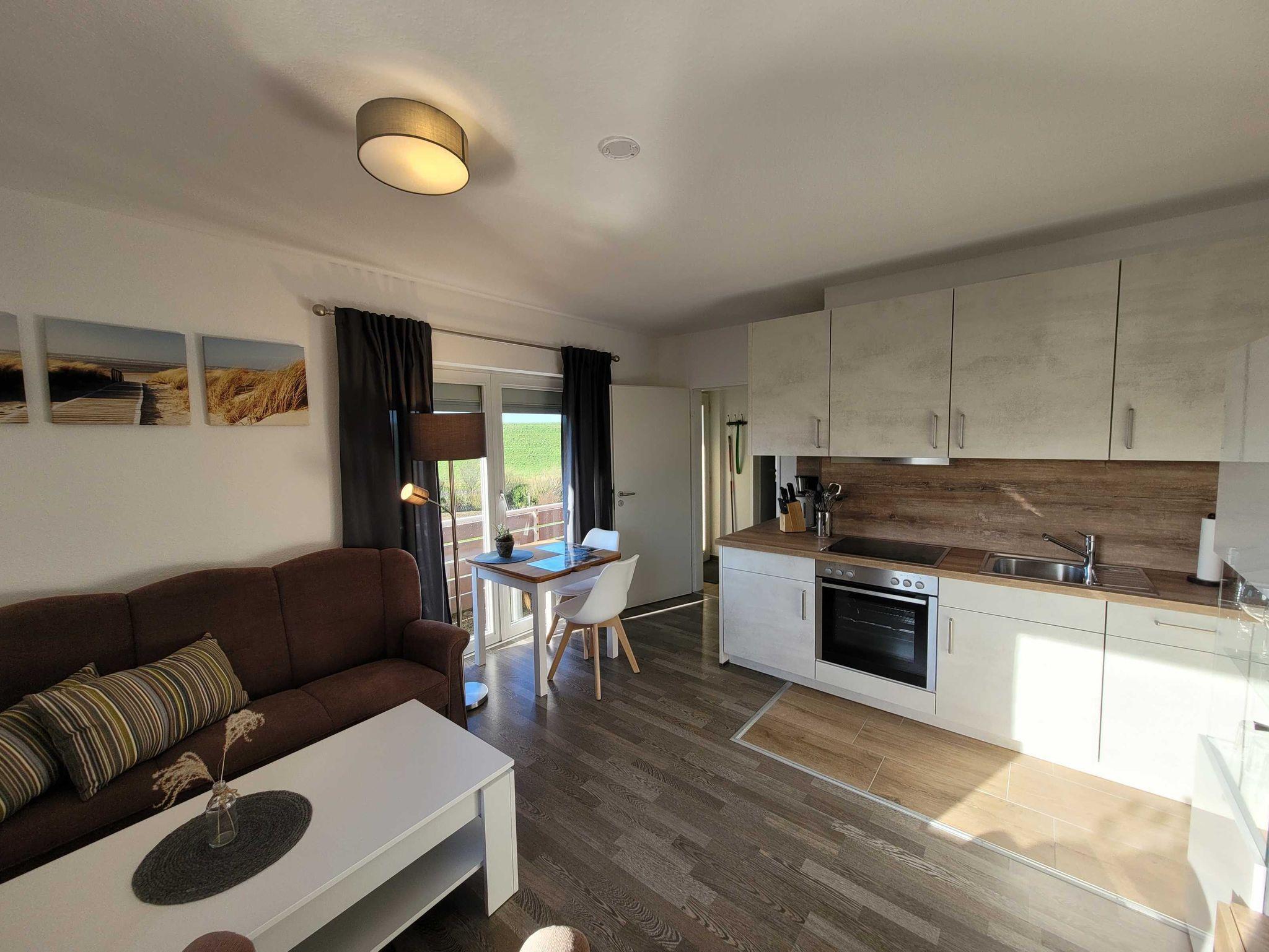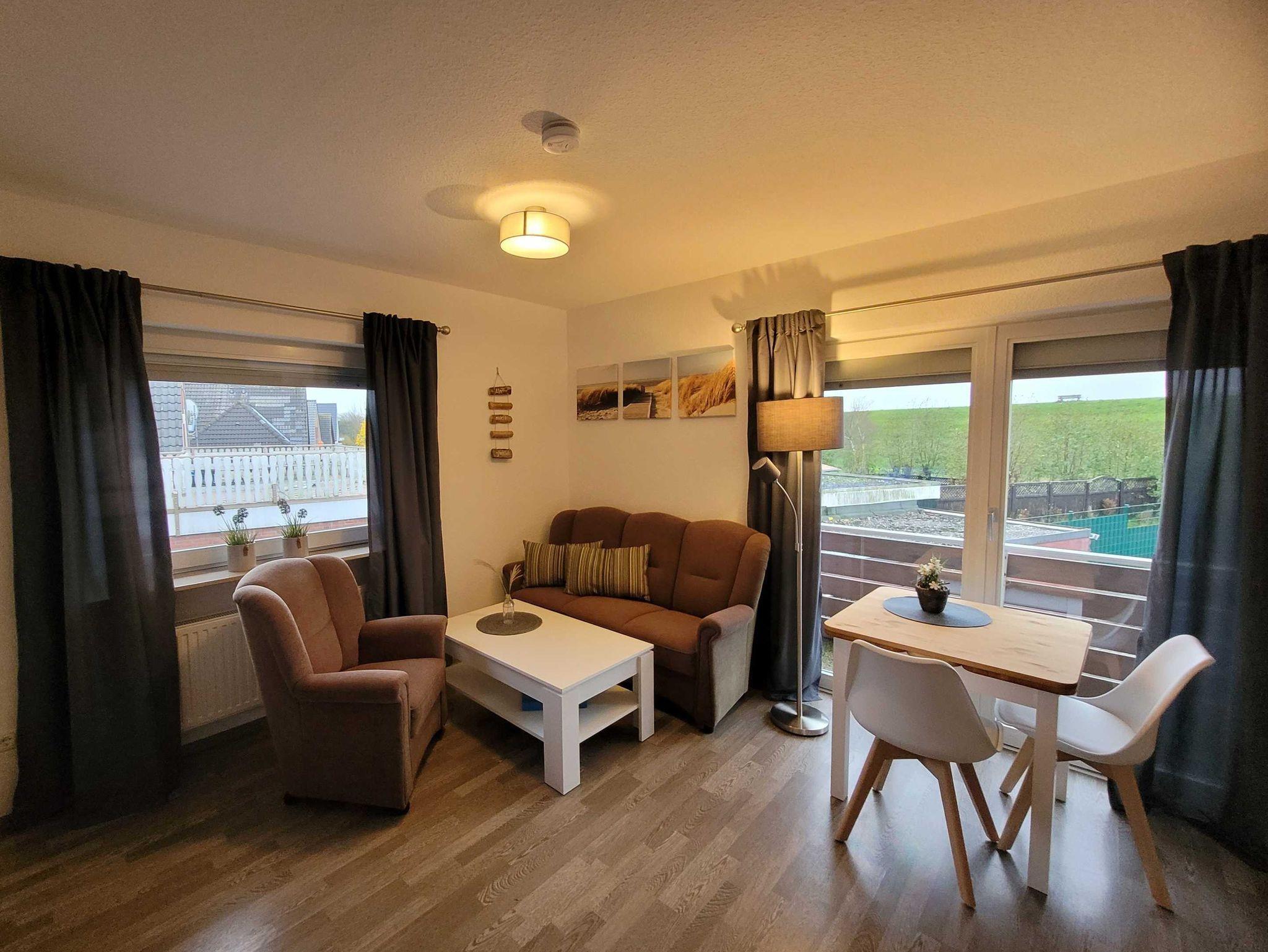 Außerdem haben Sie vom vorhandenen Balkon einen Blick in unseren Garten sowie auf den Deich und können den Sonnenuntergang von dort aus genießen.