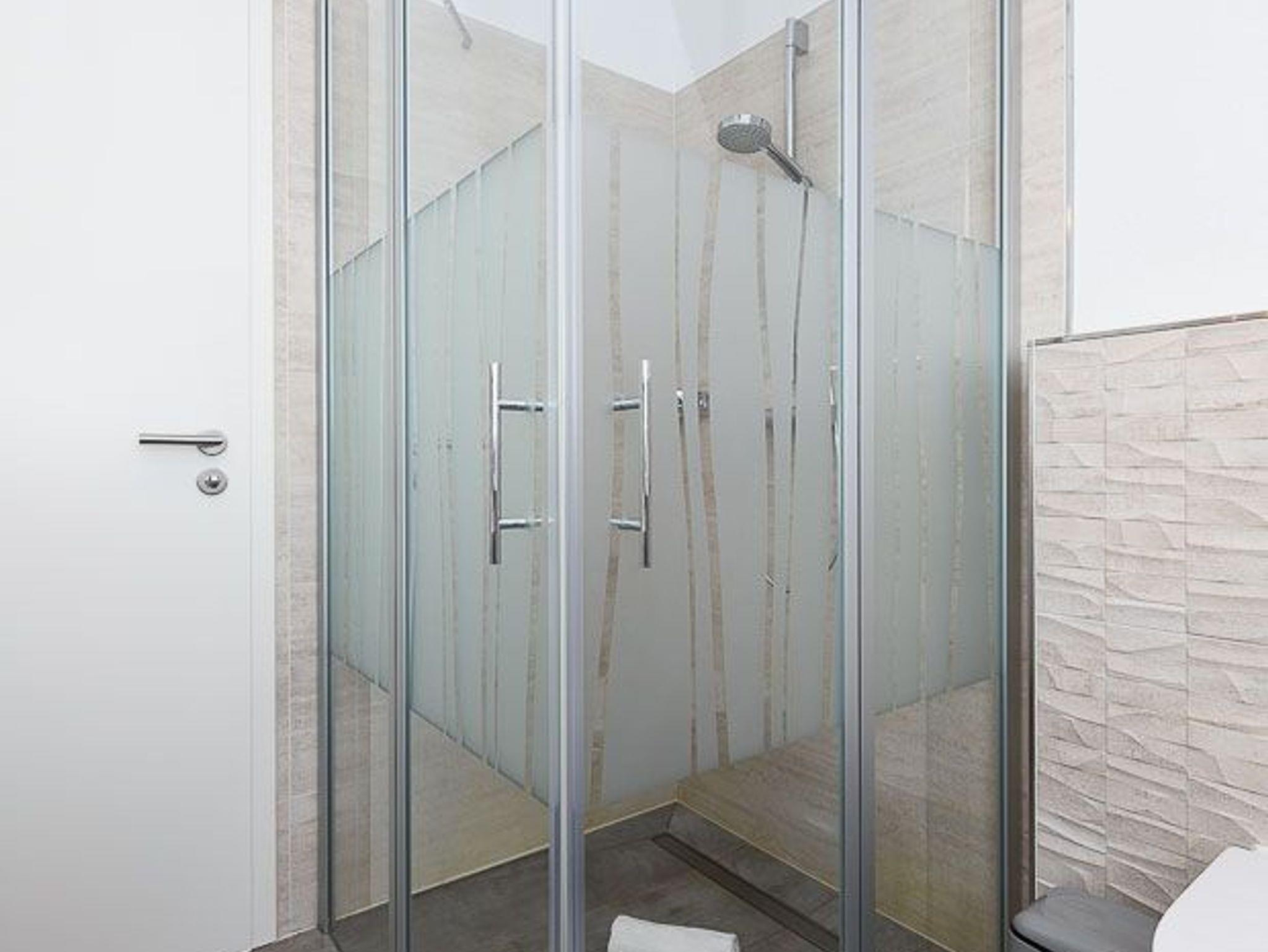 zweites Badezimmer mit Dusche, Waschtisch und WC