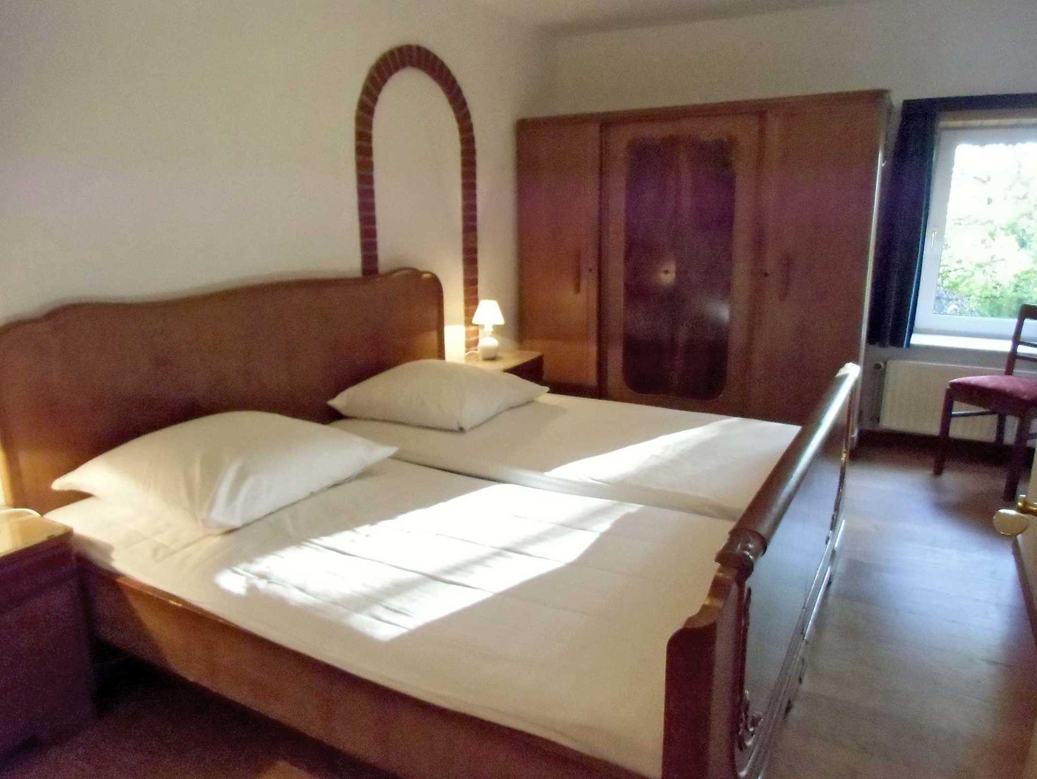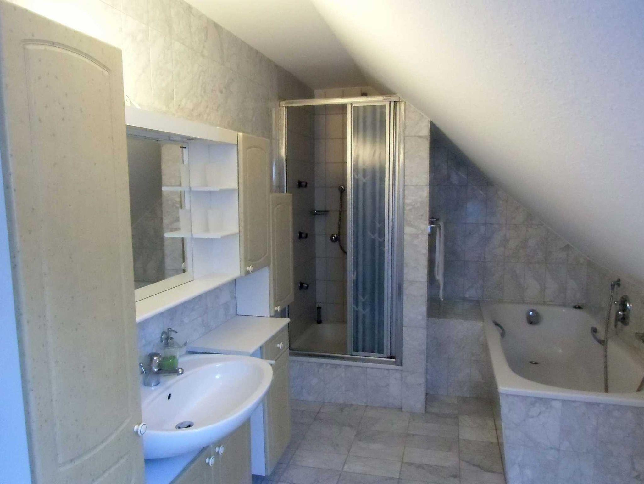 Ferienwohnung in der 1. Etage, ca. 140 qm, geeignet für bis zu 6 Personen und 1 Kleinkind, ideal auch für 2 befreundete Familien! Separate, komplett ausgestattete Küche mit Spülmaschine, Mikrowelle etc. Geräumiges Wohnzimmer mit Essplatz. Balkon. 3 Schlafzimmer mit insgesamt 6 Betten, für 1 Kleinkind steht ein Kinderbett zur Verfügung. 2 Bäder, eins davon mit Wanne, Massagedusche und Bidet. Eigene Sauna.