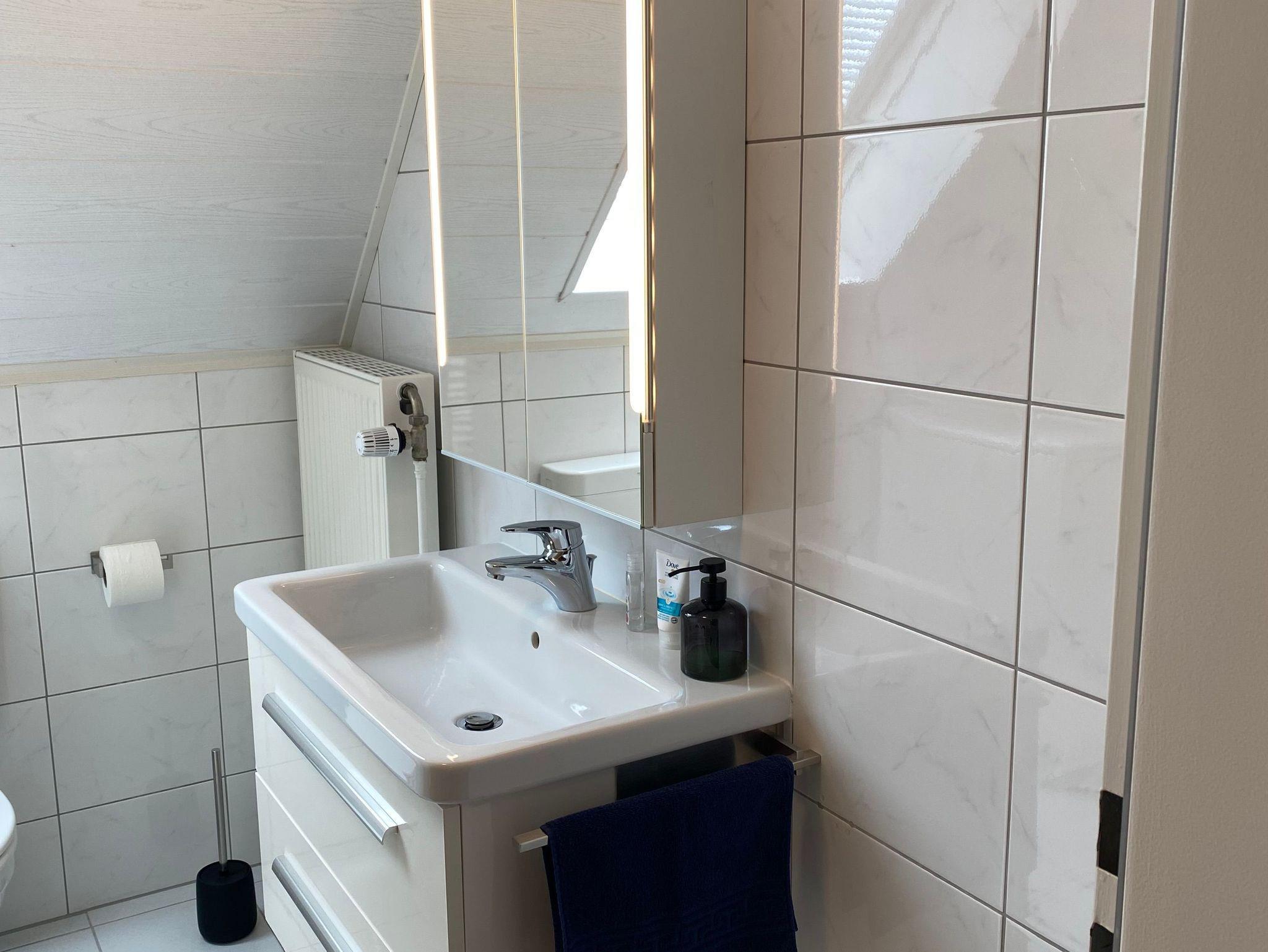 Die neue Küche ist ausgestattet mit allen notwendigen Geräten und Utensilien für den täglichen Bedarf und mit einem Frühstückstisch für zwei. Das Badezimmer mit Tageslicht verfügt über eine Dusche und Waschmaschine. Ein Abstellraum für Ihren Koffer, sowie eine Unterstellmöglichkeit für Fahrräder oder ähnliches ist vorhanden.