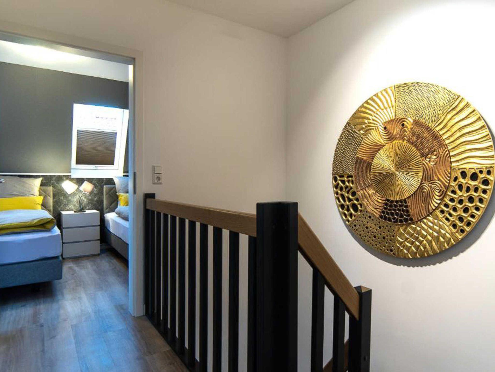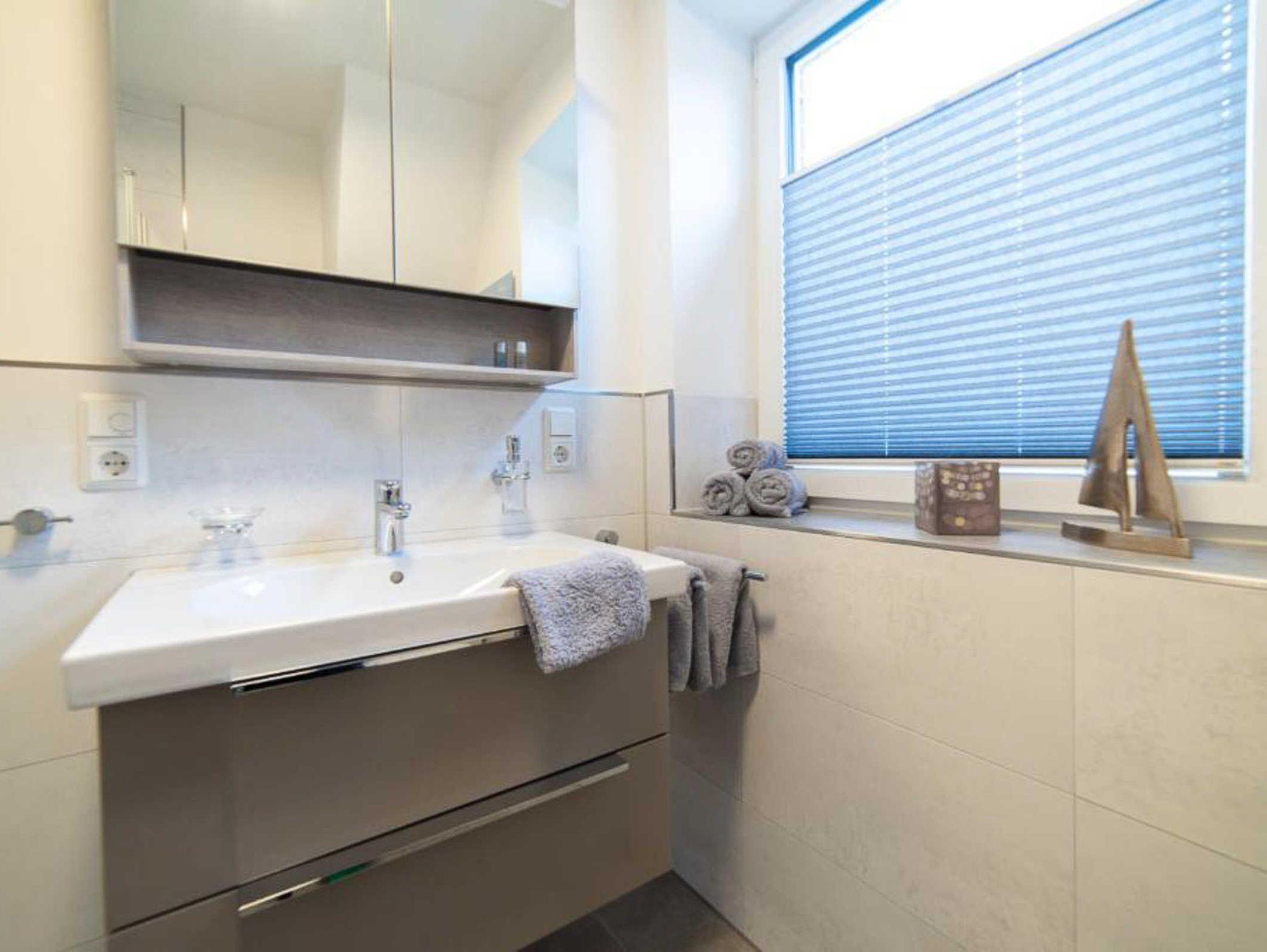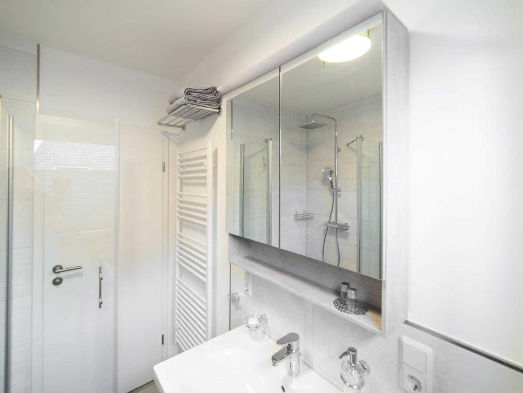 Auf jeder Etage befindet sich ein modernes Badezimmer mit bodengleicher Regendusche, Spiegelschränken, Schminkspiegel, Föhn, Handtuchheizkörper und vielfältigen Ablagemöglichkeiten. Die Fußbodenheizung im gesamten Haus sorgt für angenehme Raumtemperaturen.