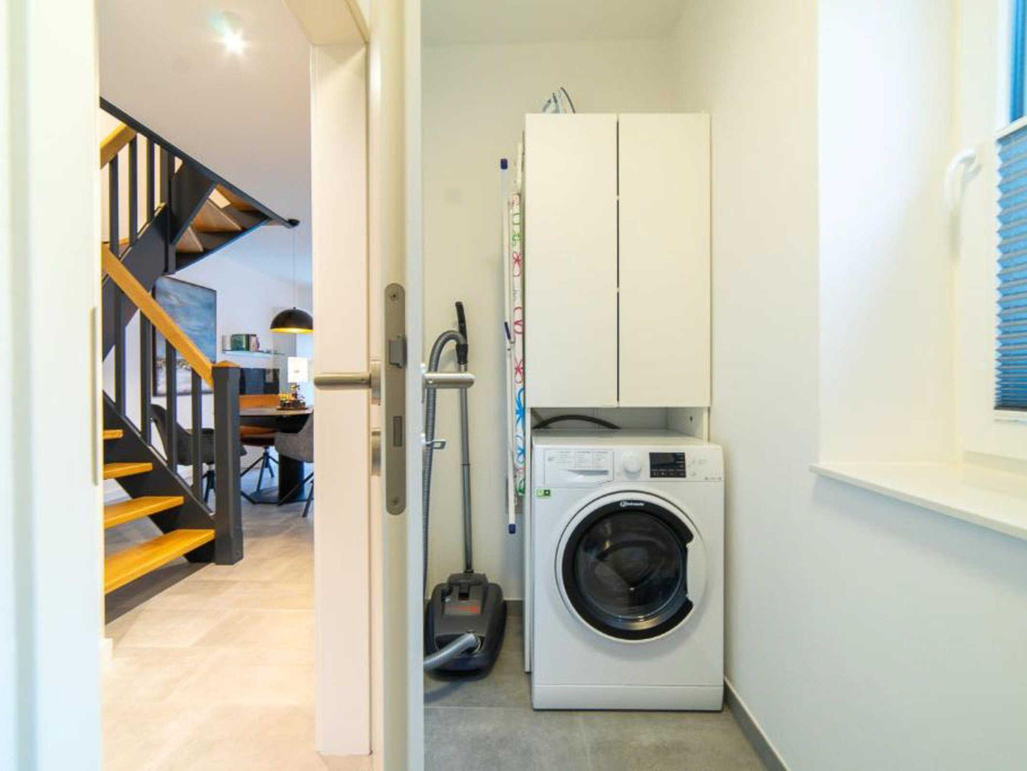 Die Küche bietet mit ihrer kompletten Ausstattung u.a. mit Spülmaschine, Kühl- Gefrierschrank-Kombi, Kaffeemaschine, Toaster, Wasserkocher und Mixer alle Annehmlichkeiten der Selbstversorgung. Der Hauswirtschaftsraum verfügt über Waschtrockner, Bügeleisen, Bügelbrett, Wäscheständer und Staubsauger. Hier ist auch ein Erste Hilfe Kasten untergebracht.