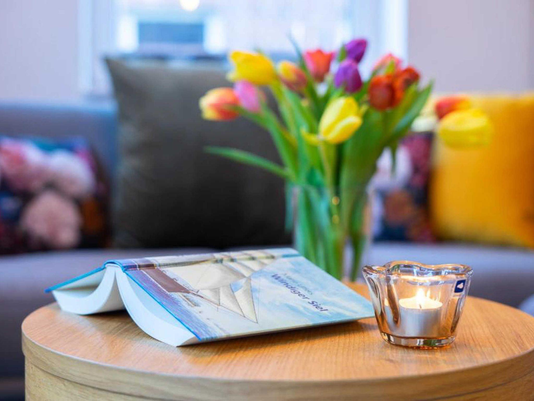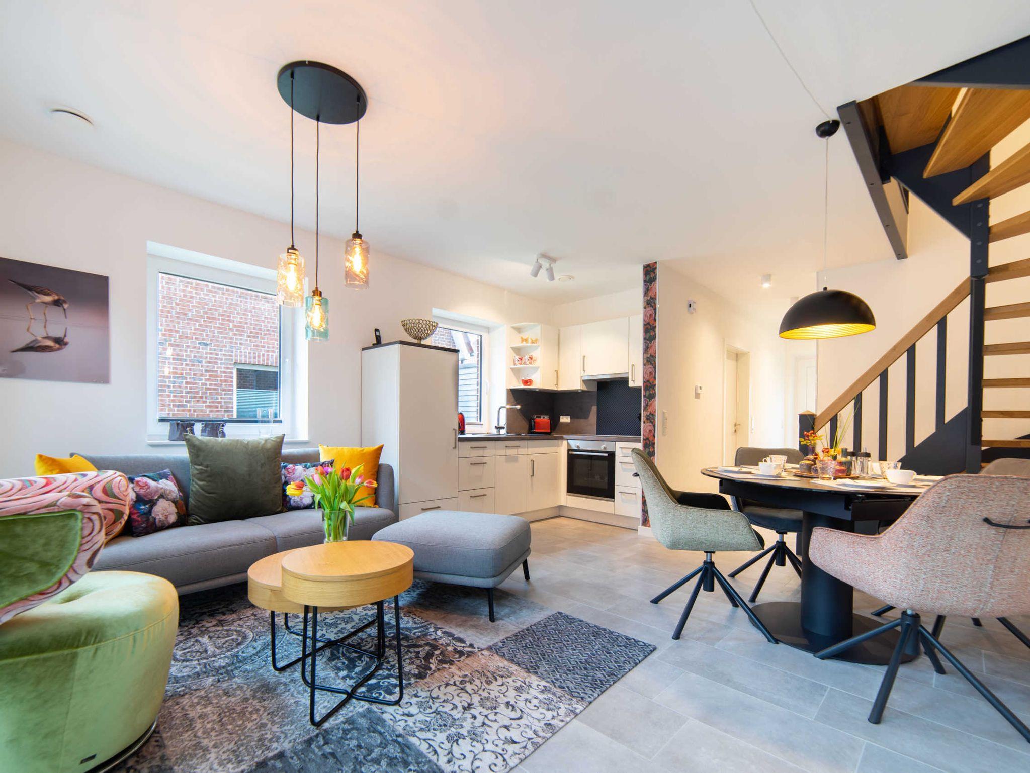 Im Wohnzimmer laden ein gemütliches Sofa und Sessel, ein ausziehbarer Esstisch sowie eine Auswahl an Spielen und Büchern zum Verweilen und zu geselligen (Familien) Abenden ein. Eine hochwertige Multimedia-Ausstattung mit diversen Anschlussmöglichkeiten und Smart TV sorgt im Wohn- und in den Schlafzimmern für zusätzliche Unterhaltung.