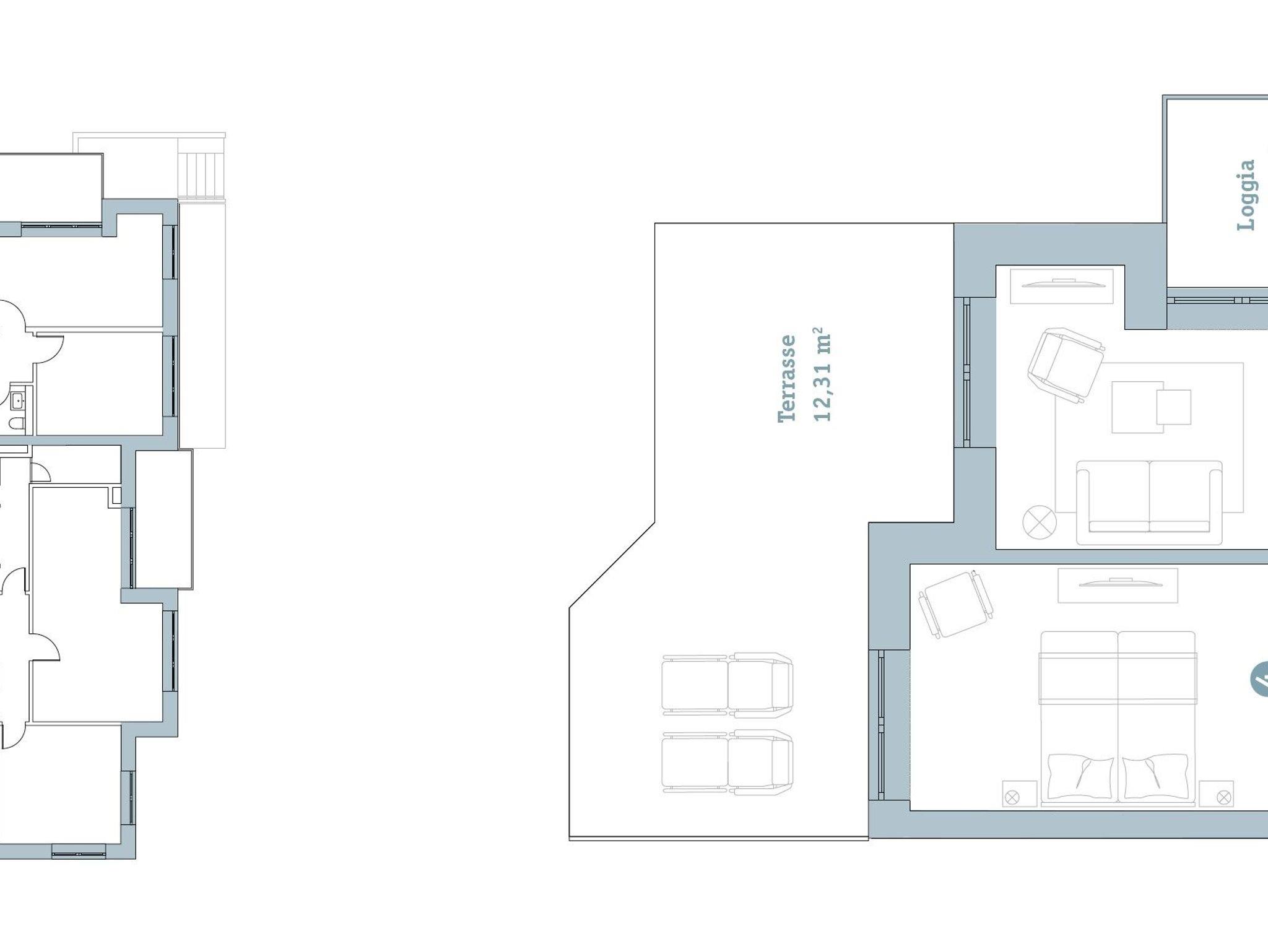 Auf ca. 74 m² bietet diese Erdgeschosswohnung einen hellen, offenen Wohn- und Essbereich mit voll ausgestatteter Küche. Die Loggia mit Blick auf die Harle und den Museumshafen sowie die großzügige Terrasse laden zu sonnigen Stunden im Freien ein.