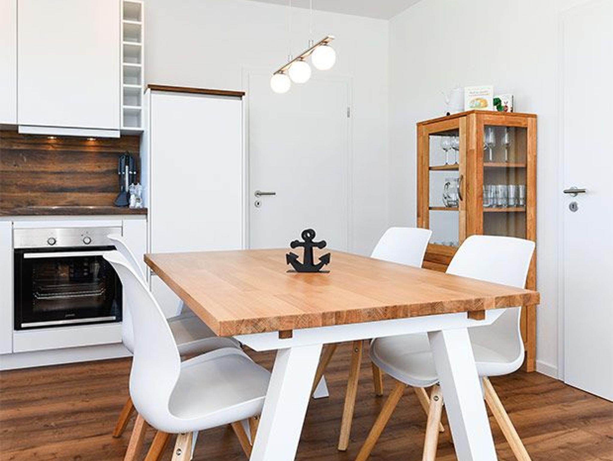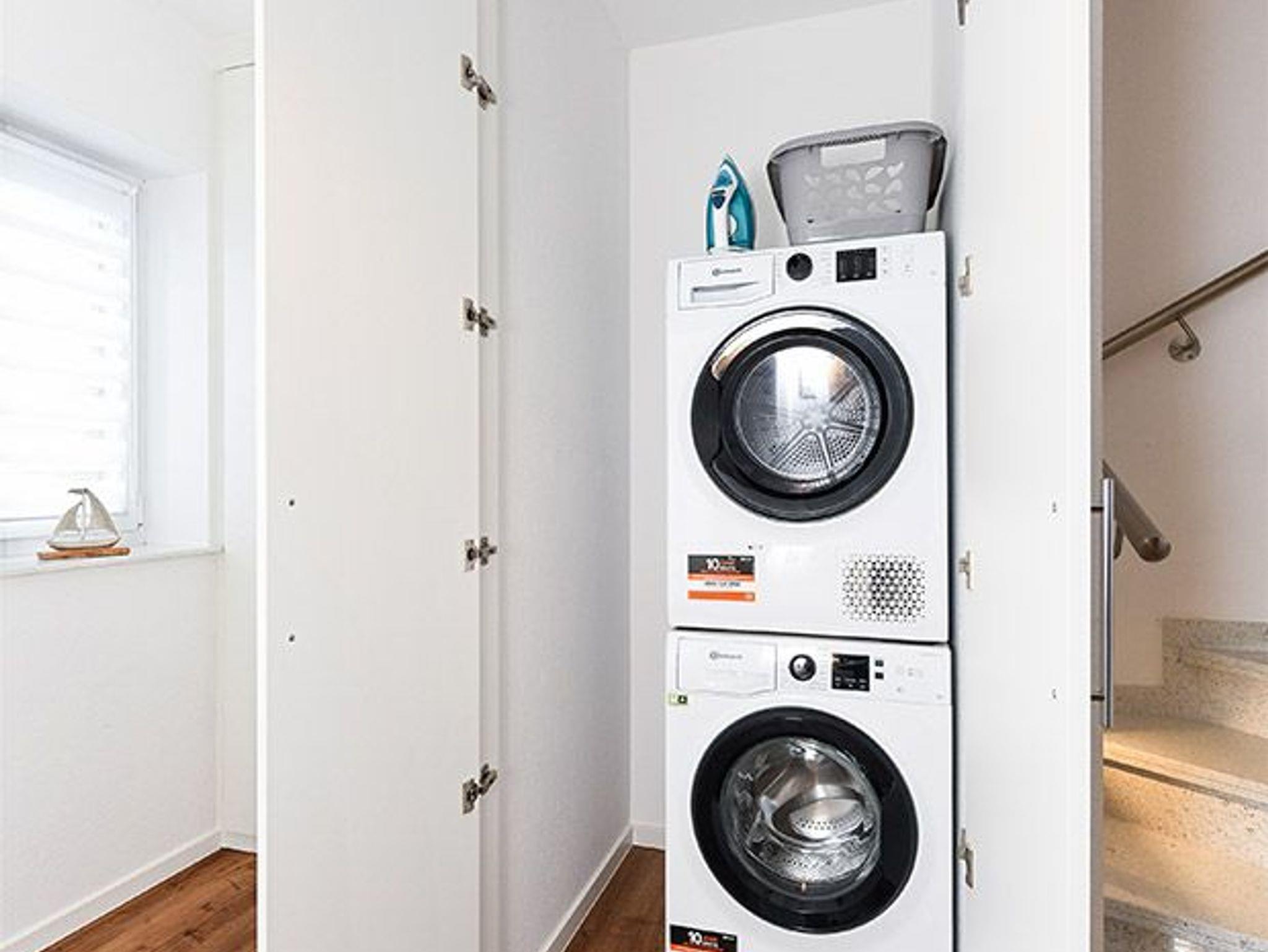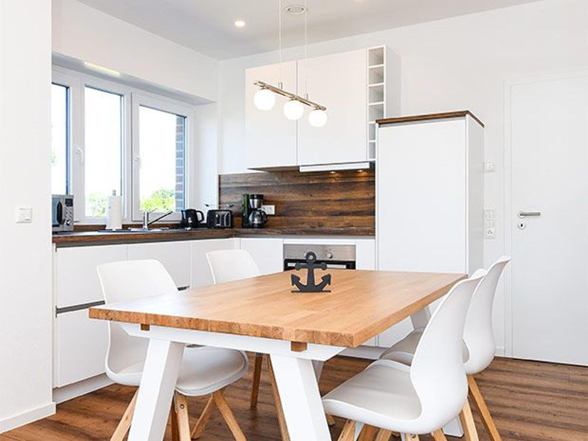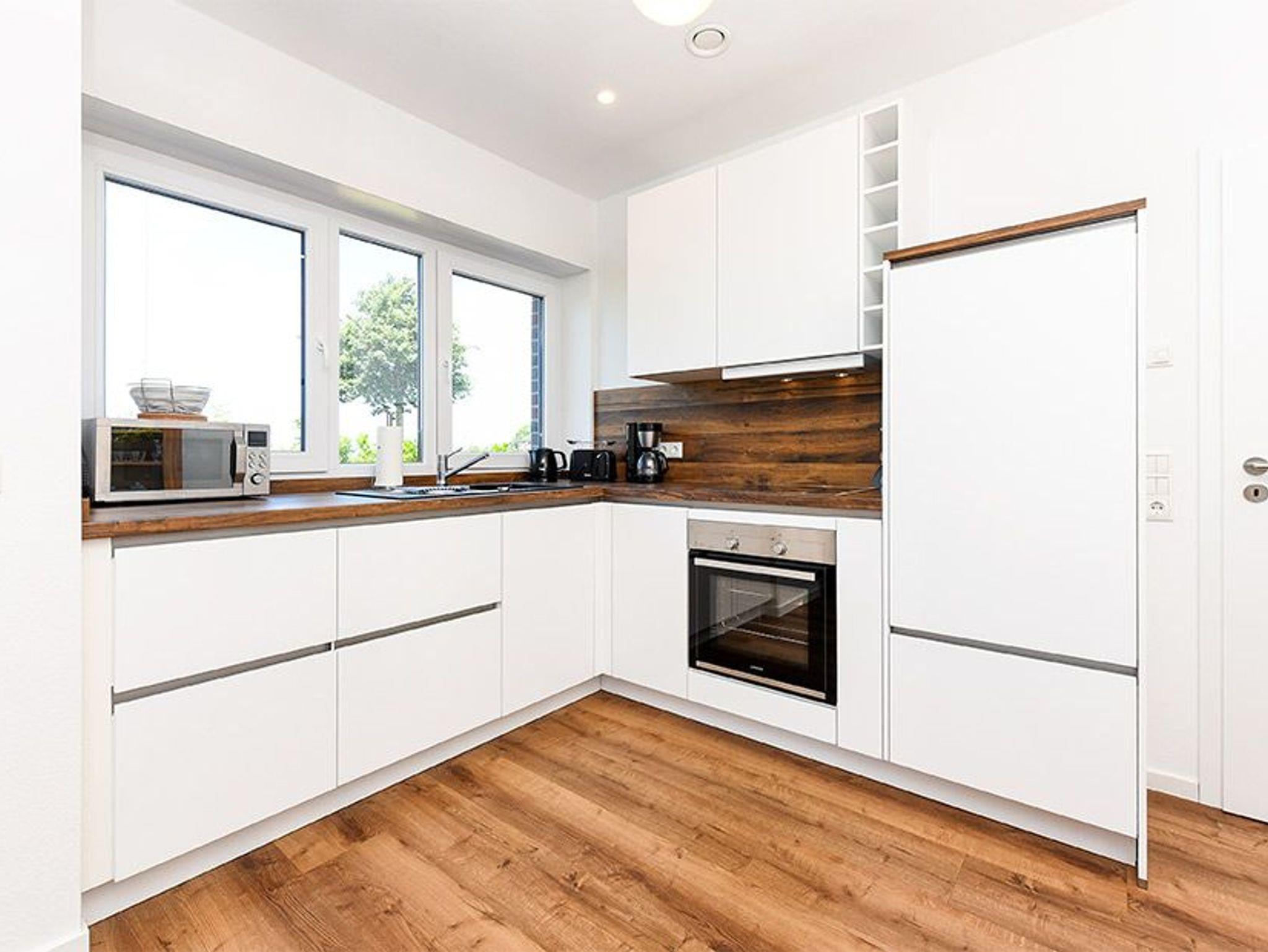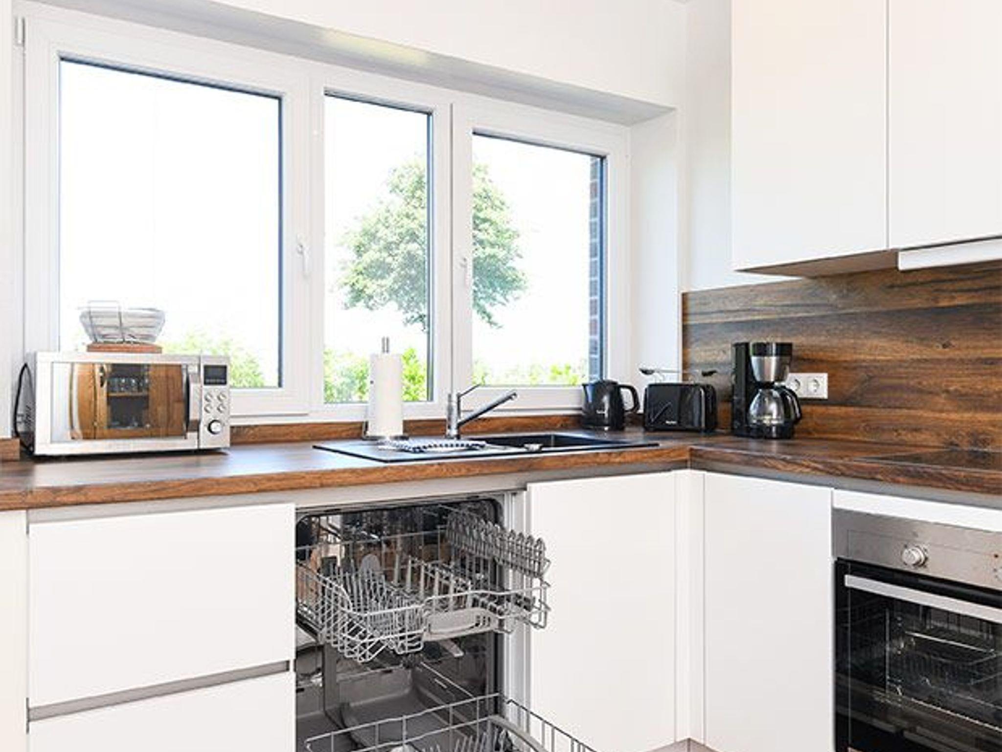 Das Ferienhaus ist modern-gemütlich, hell und freundlich gestaltet und eingerichtet sowie äußerst hochwertig mit viel Liebe zum Detail ausgestattet. Es verfügt zum Beispiel über eine Terrasse mit Strandkorb, über eine ausgestattete moderne Küche mit Geschirrspülmaschine und Mikrowelle, und es stehen Waschmaschine und Wäschetrockner zum Benutzen bereit.